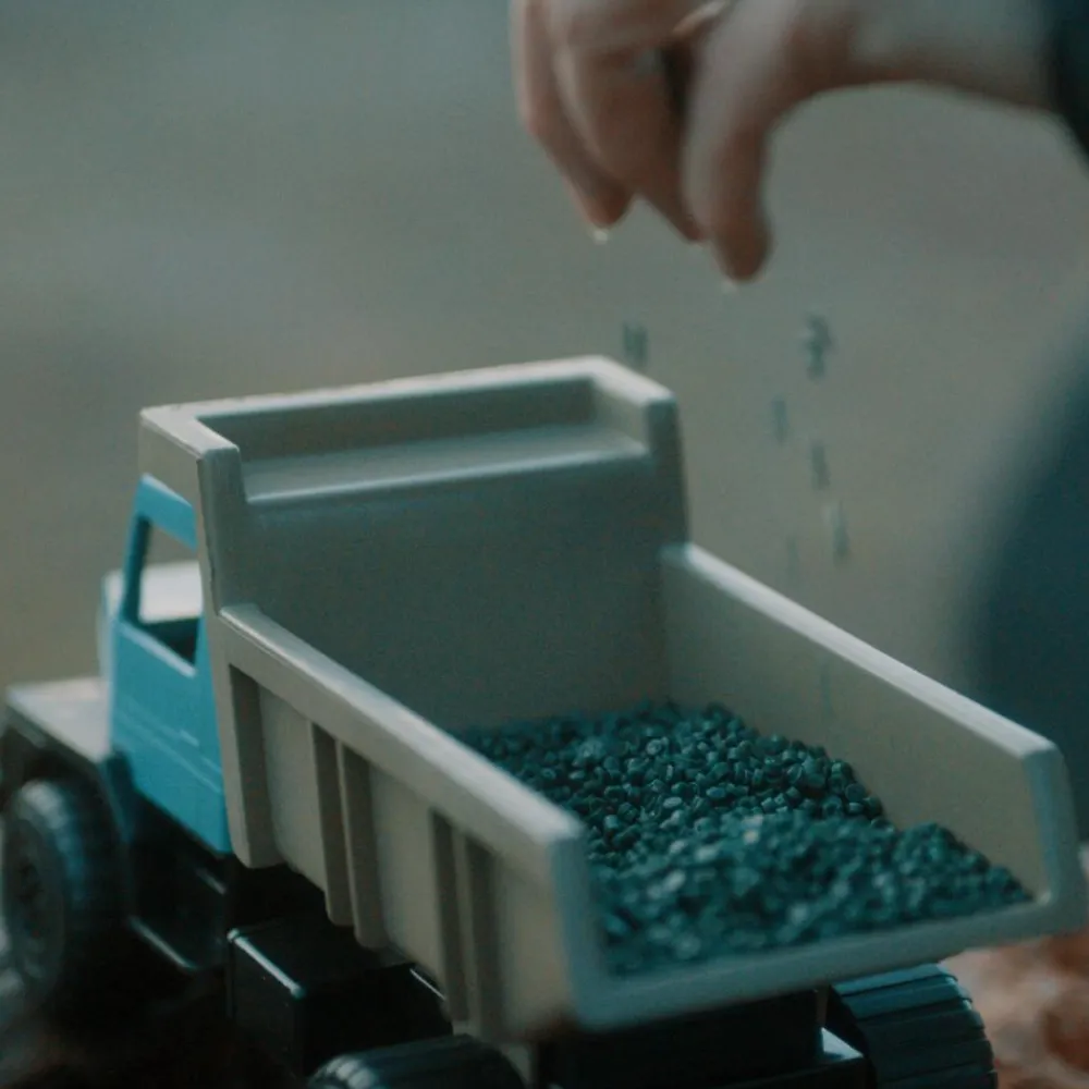 Det færdige legetøj har lidt andre farver, end dantoy legetøj plejer at have, og overfladen er også lidt anderledes, fordi der er tale om genanvendt plast. Men det er lige så solidt og holdbart som legetøj fremstillet af nyt plast, og det kan også tåle samme hårdhændede opvaskemaskine-rengøring ved 70 grader, som alt andet dantoy-legetøj.