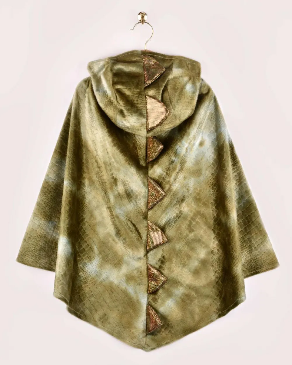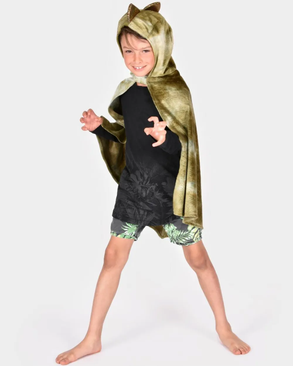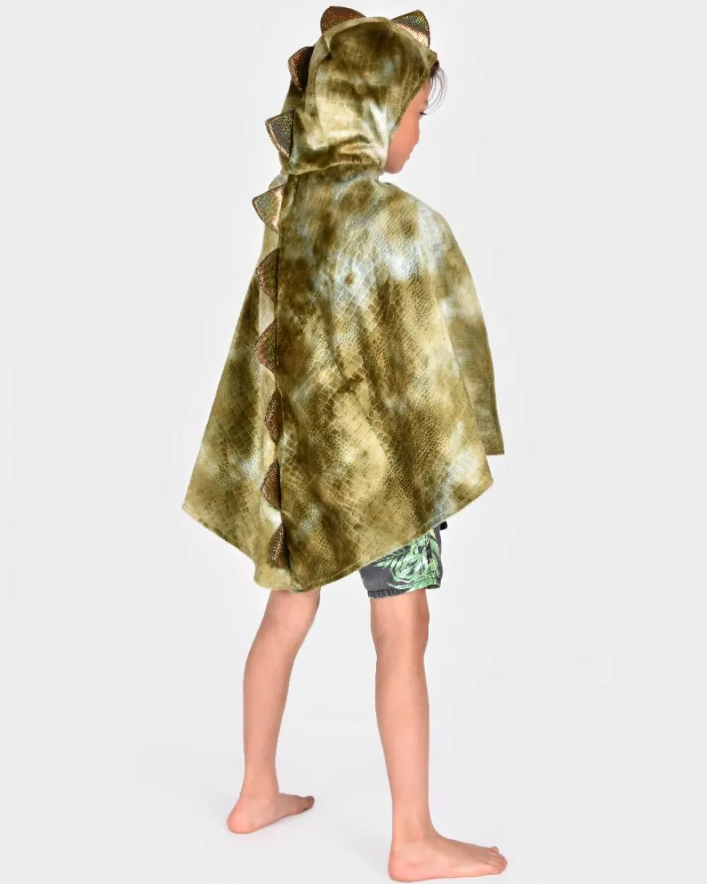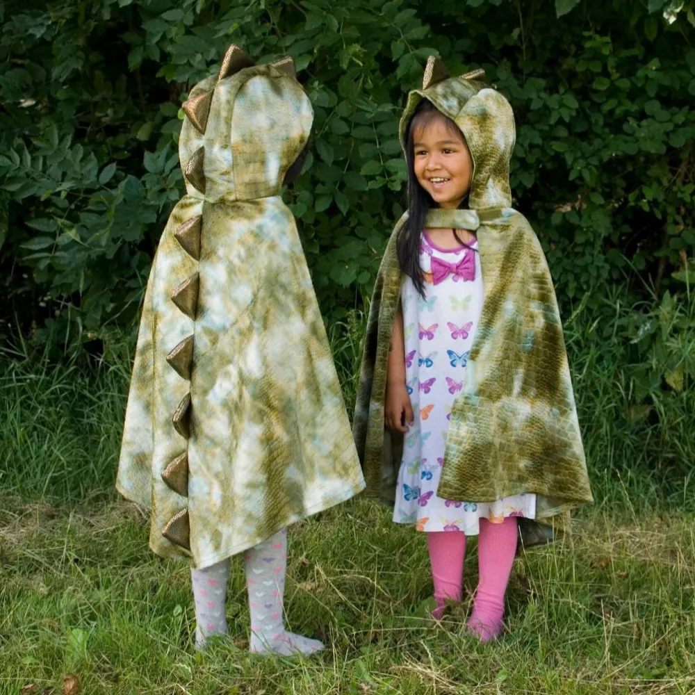 Sjovt og farligt dinosaurkostume, der består af en kappe med hætte. Den lukkes med velcro foran.
