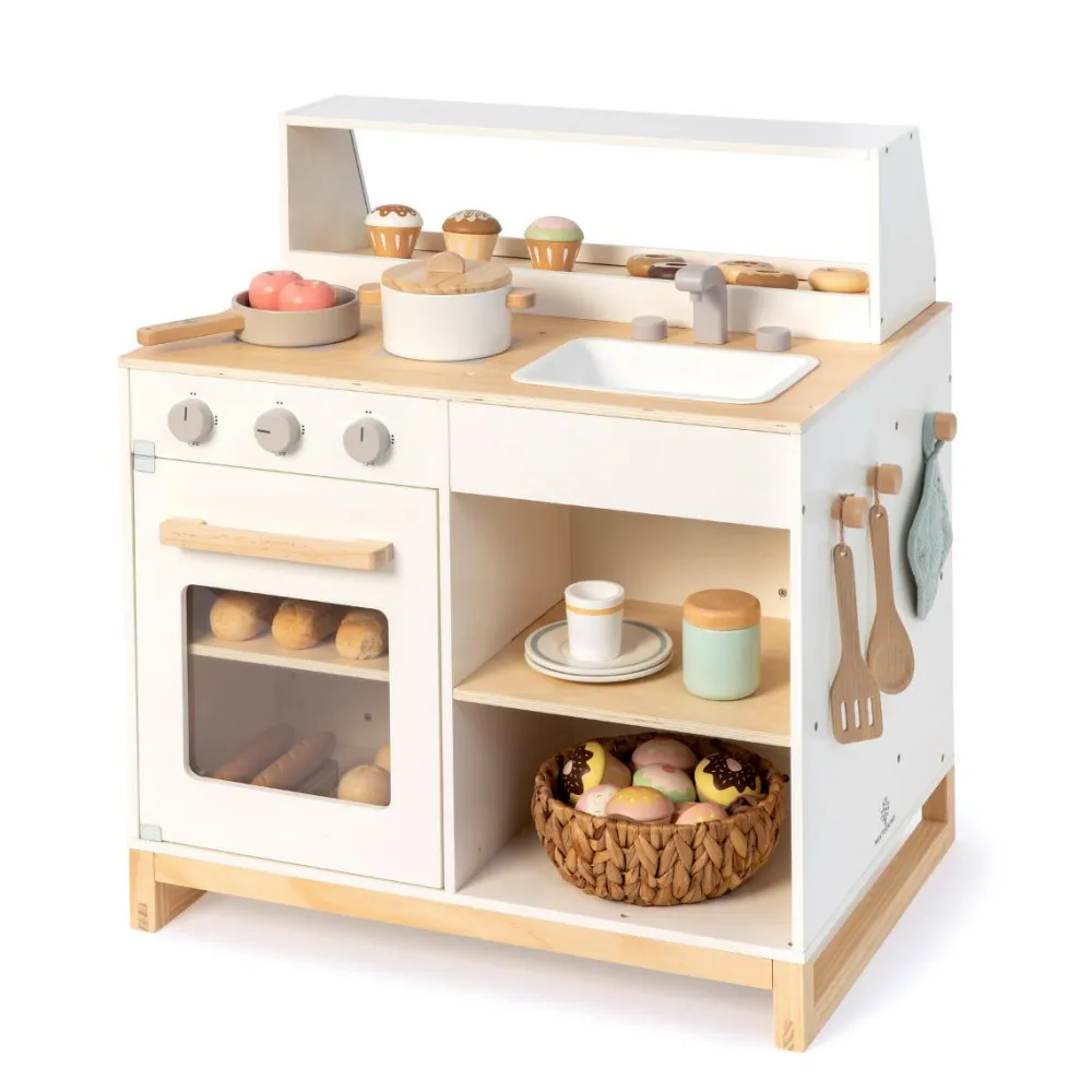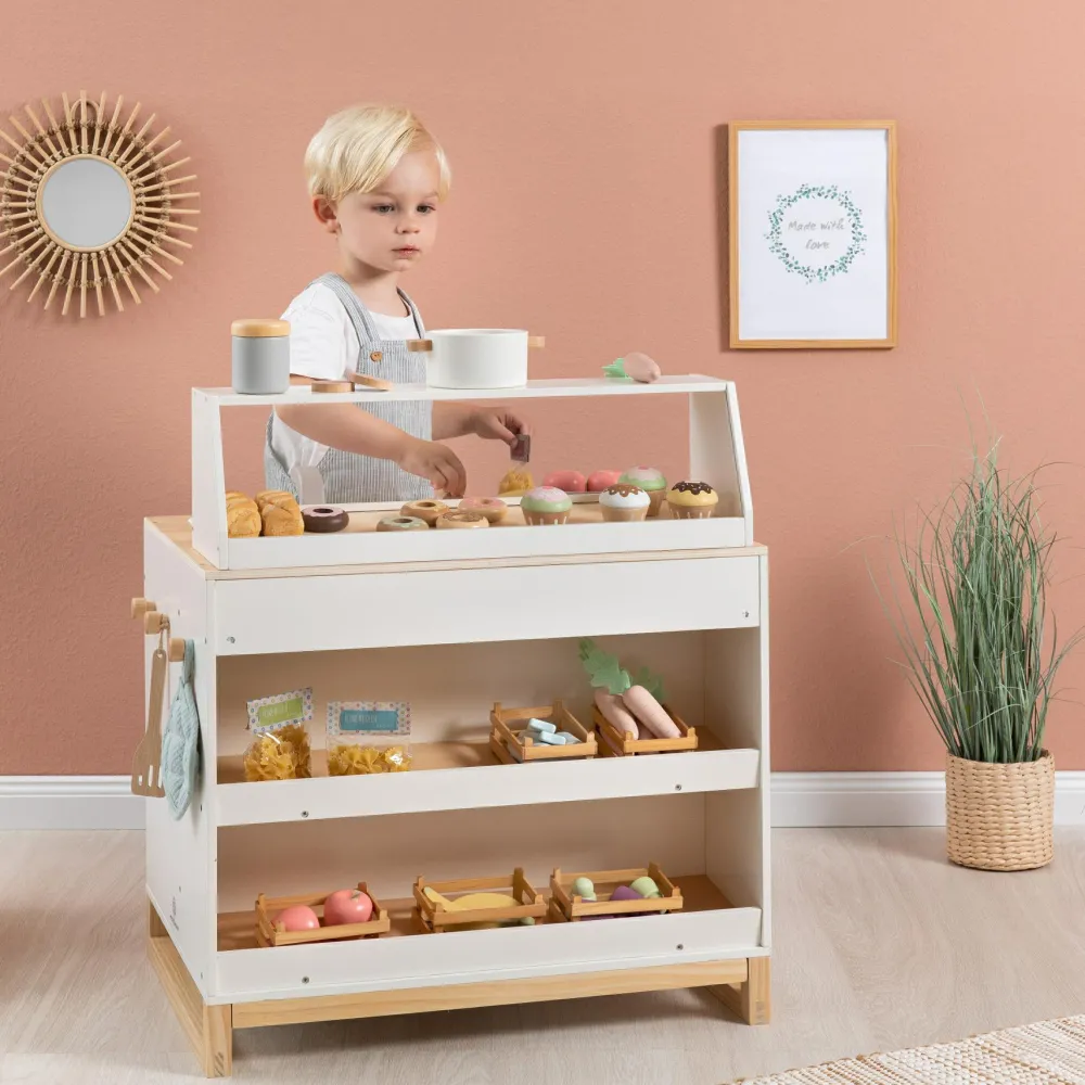 Her er det klassiske (og ret lækre) legekøkken kombineret med en butik, der kan lokke kunder i massevis til, når dit barns legemad er blevet sat frem eller måske tilberedt og er klar til servering.