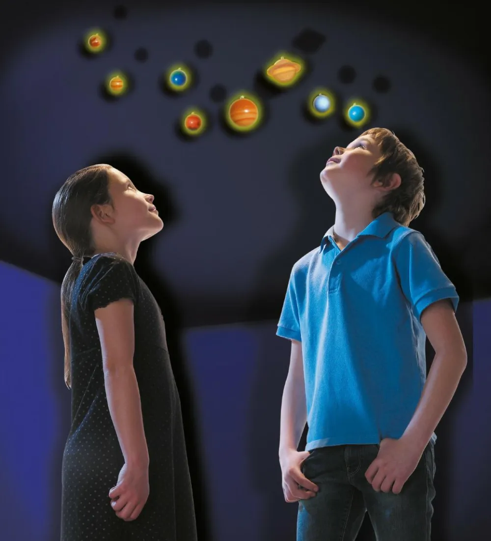 Om dagen udgør planeterne en farverig udsmykning til børneværelset og om aftenen/natten lyser planeterne op, hvis de først holdes i nærheden af en lyskilde, og giver en flot effekt.