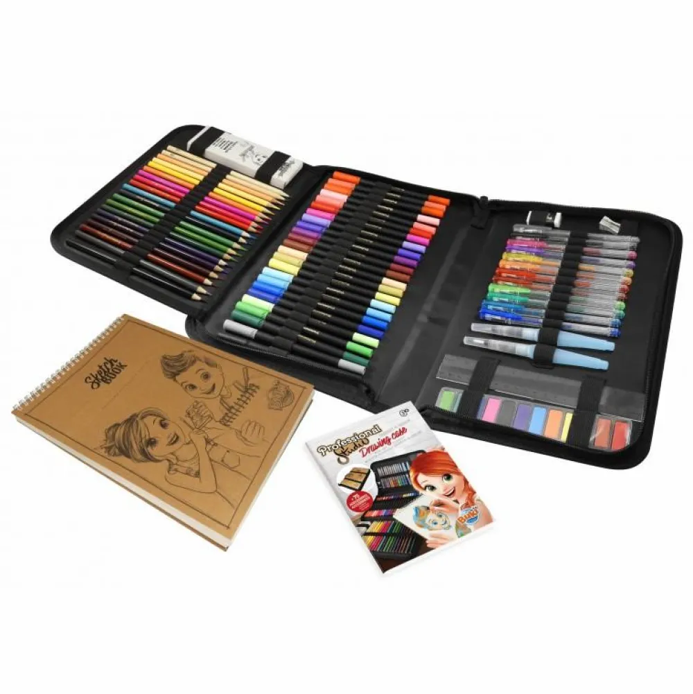 Praktisk mappe som din lille kunstner kan tage med sig rundt, og som har plads til skitseblokken omme på bagsiden, hvor den sidder godt fast med et par elastikker.