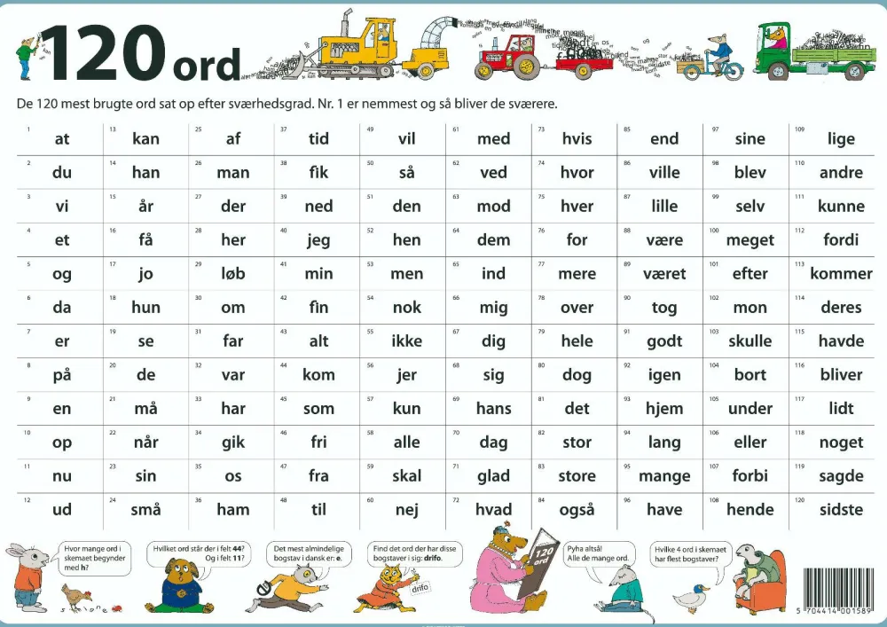 Der findes massevis af ord i vores sprog, men særligt 120 af dem bruger vi ret så hyppigt. Derfor er det godt at få dem automatiseret tidligt, da de ikke alle er helt lydrette og nemme at læse.