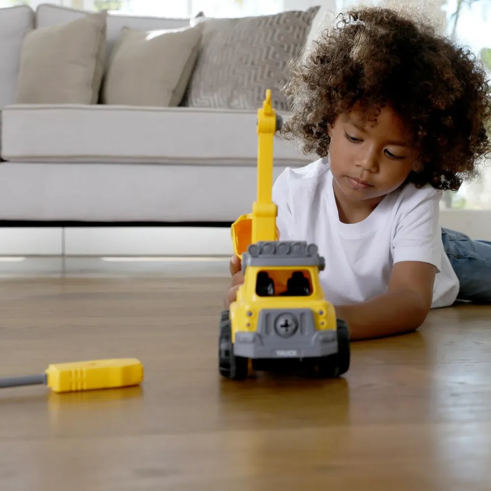 Elsker dit barn at lege med biler og har en velbygget pilfinger? Så er denne fine byg selv truck med fjernbetjening og skruemaskine det helt rigtige.