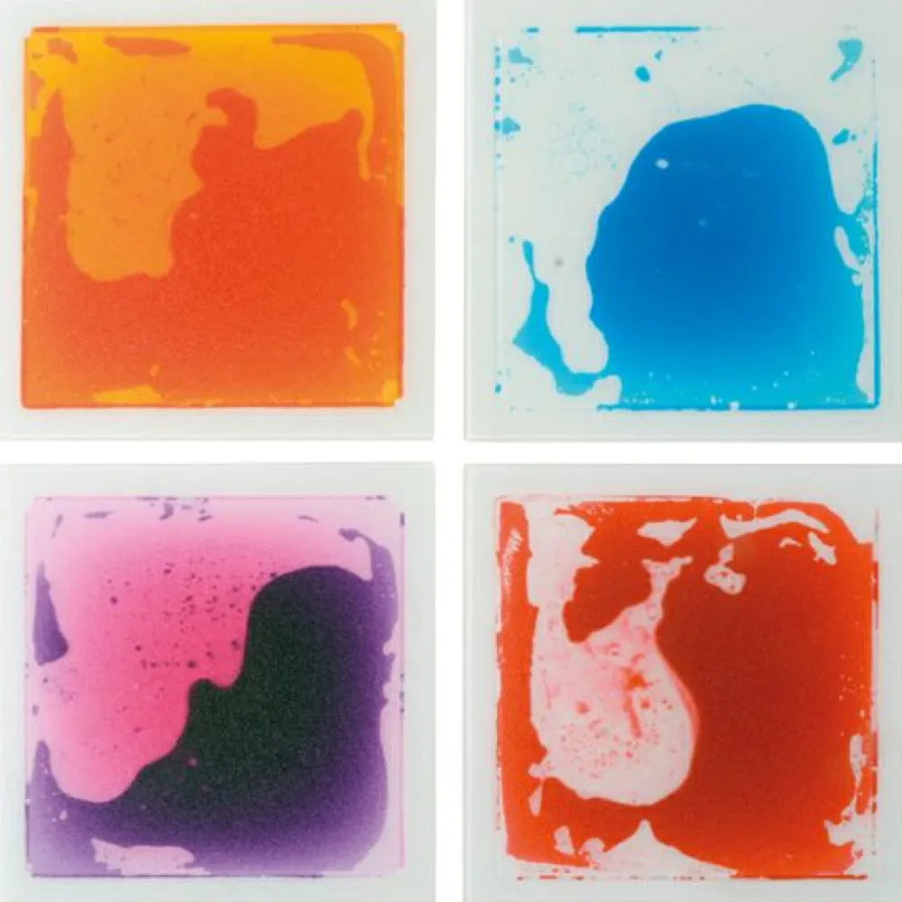 Når dit barn trykker fingre, hænder, fødder, albuer eller næsetippen ned på de væskefyldte måtter, flytter den farvede væske sig rundt og bløbber sjovt og fascinerende rundt.