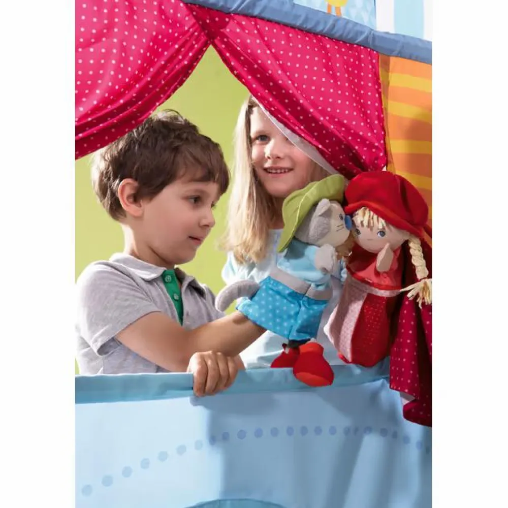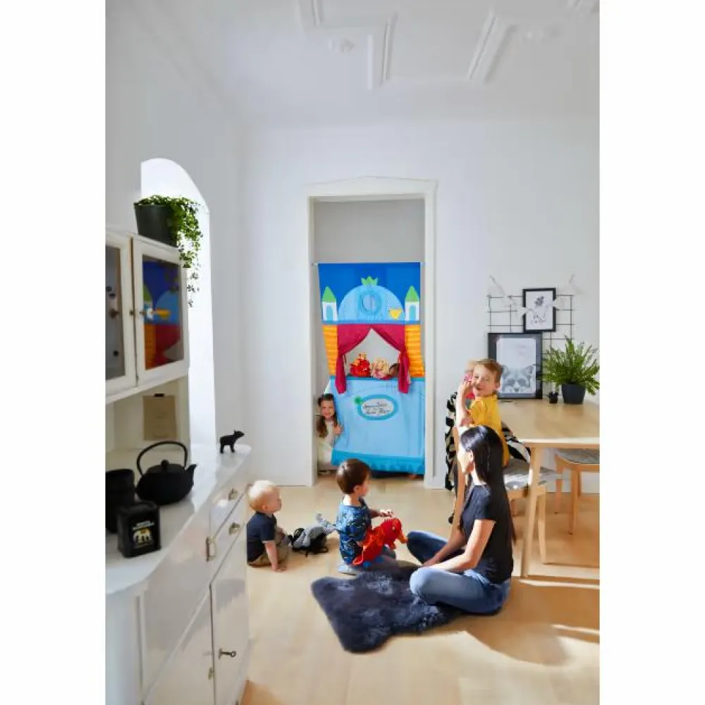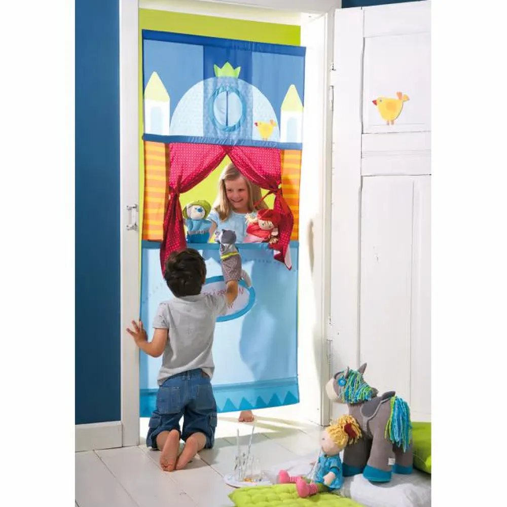 Verden har brug for mere dukketeater. Med denne fine dug, lige til at sætte op i en dør, kan dit barn sætte de fineste dukketeaterforestillinger op og lade fantasien få frit spil.