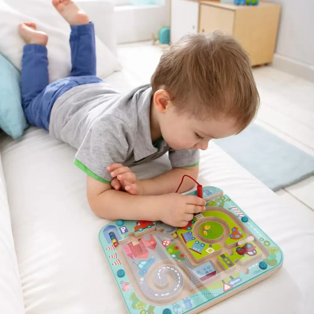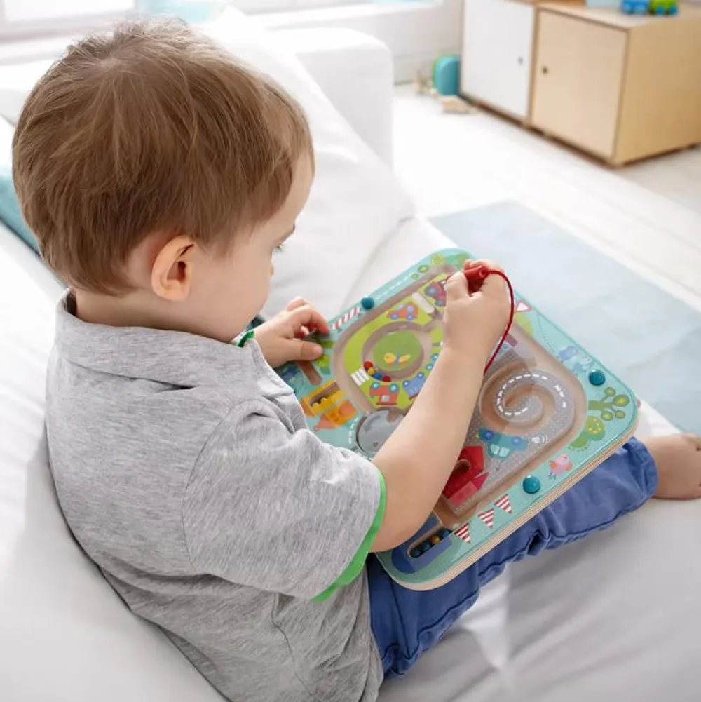 Denne magnetiske labyrint kan underholde dit barn på tidspunkter, hvor det er smart, at der ikke er larm og ting, der kan tabes på gulvet.