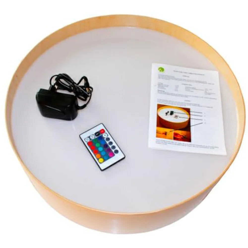 Med fjernbetjening kan I skifte både lysintensitet og farve og skabe eventyrlige universer og formationer. Prøv at drysse ris, sand eller et andet rent materiale ud på lysbakken. Lad dit barn vælge hvilken lysfarve, det vil starte med og tegn så i sandet. Brug fingrene, en tør pensel – eller prøv at puste luft gennem et sugerør og se magien tage form!