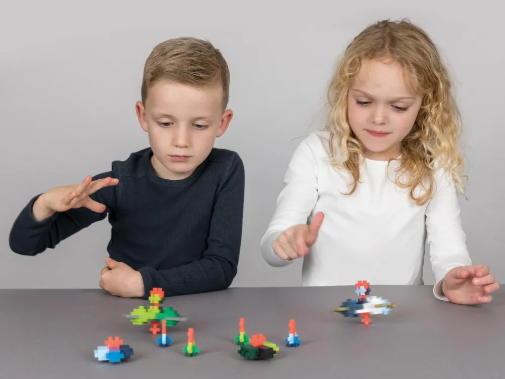 Formen som små plus-tegn kan sættes sammen på alle leder og kanter – og de fås i små (2 x 1,2 x 0,4 cm) og store (5 x 3 x 1 cm) og i mange farver. Skønt konstruktionslegetøj, som begejstrer de fleste børn. Leg med Plus-Plus styrker ungernes sans for geometri og logik. På fx YouTube kan du finde frem et massevis af byggevejledninger og forslag til at konstruere med Plus-Plus.