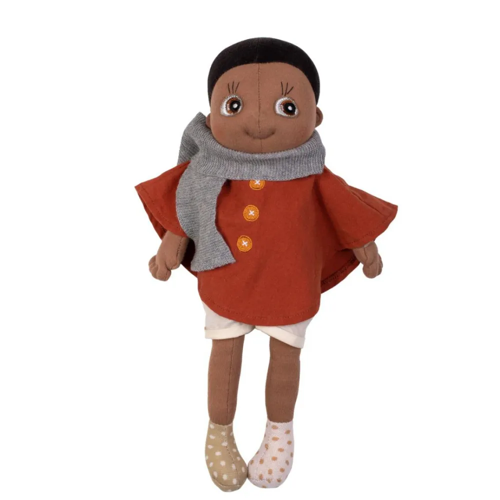 Dejlig poncho/kappe som dit barn kan give sin dukke på til lege ude og inde. Blødt, gråt halstørklæde følger med for at fuldende looket.