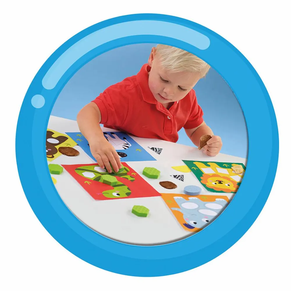 Med dette sæt kan dit barn lære om geometriske former og farver, når dyrene skal have de rigtige brikker på.