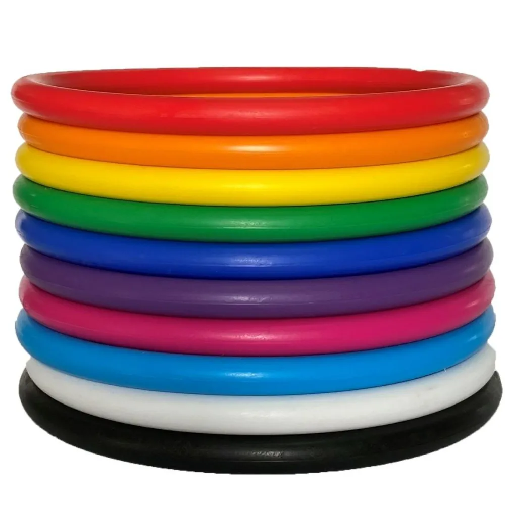 Pakke med ringe til mange aktiviteter. De kan for eksempel bruges til ringspil, hvor man laver præsitionskast med ringene, men de kan også placeres som en slags forhindringsbane, hvor man kun må stå med en fod i hver ring og muligvis kun på et ben af gangen.