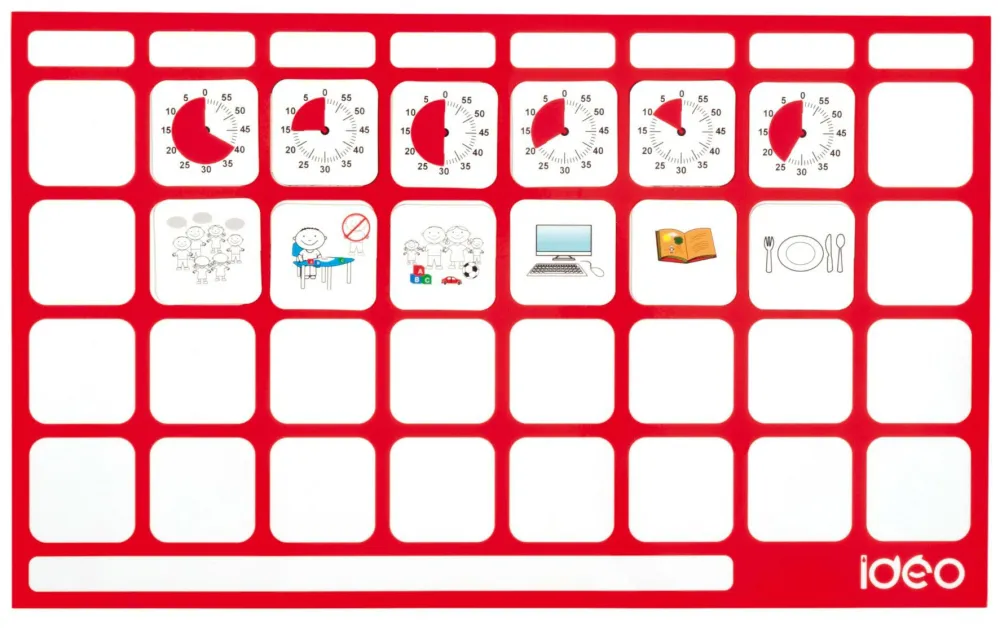 Smart, magnetisk bræt med felter, som I kan sætte piktogrammer i.