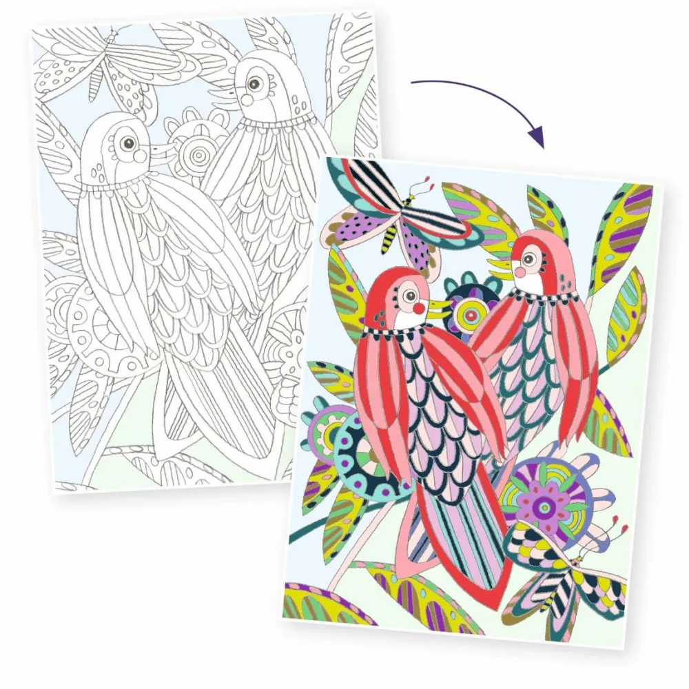 Der følger forslag til farvelægning med i sættet, men man kan selvfølgelig også finde på sit eget udtryk.