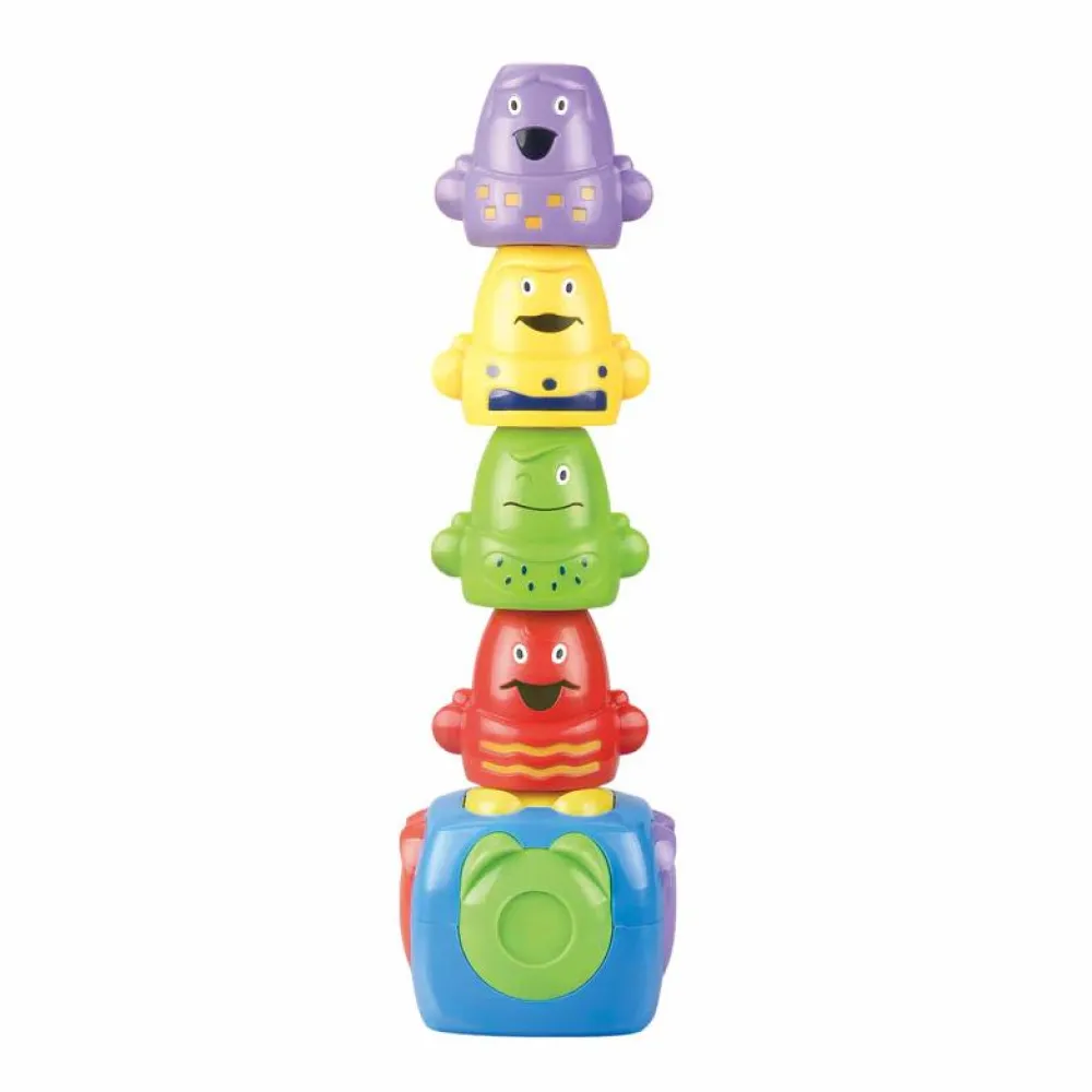 Når alle 5 klodser er stablet, måler de cirka 30 cm i højden.