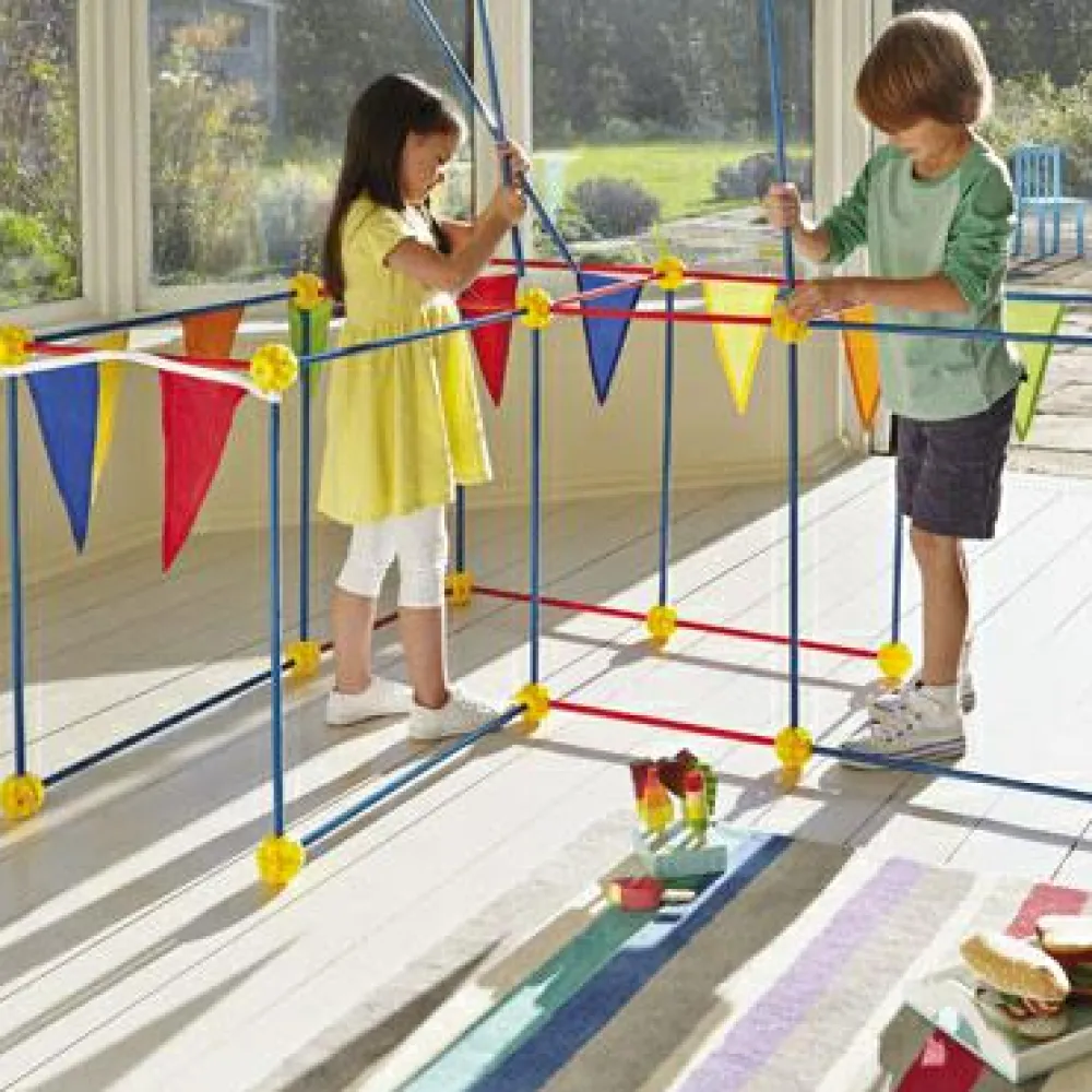 OBS: Der medfølger ikke tæpper i sættet, men brug et lagen eller andet, for at danne rammerne om den perfekte hule eller hus.