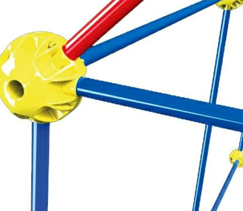 Man sætter stængerne ind i hullerne i kuglerne, og konstruere på den måde sin helt egen model, eller følger en af de forslag der er med i æsken.