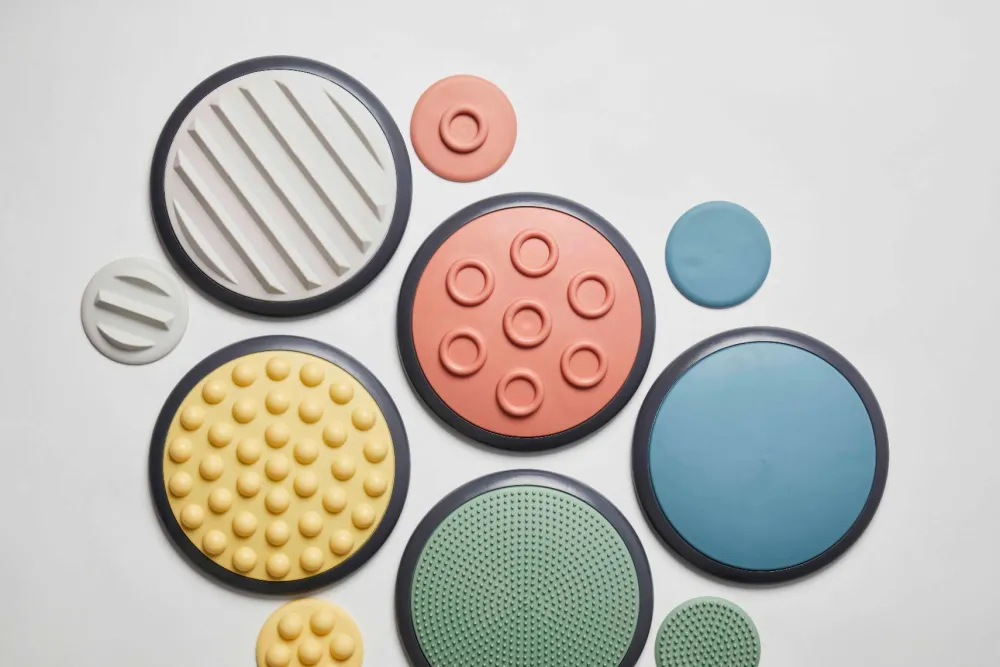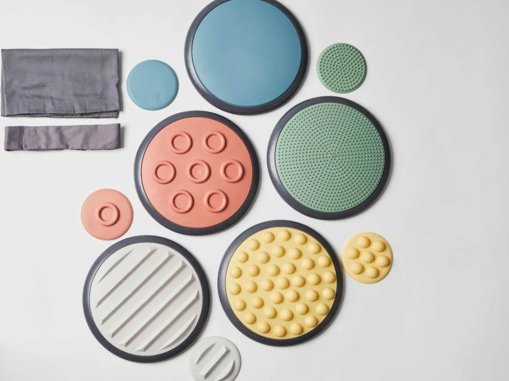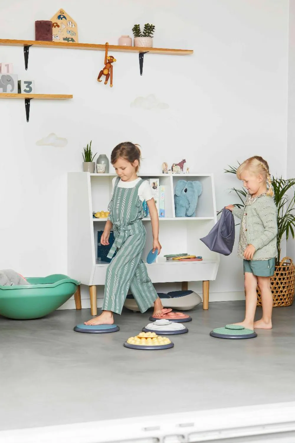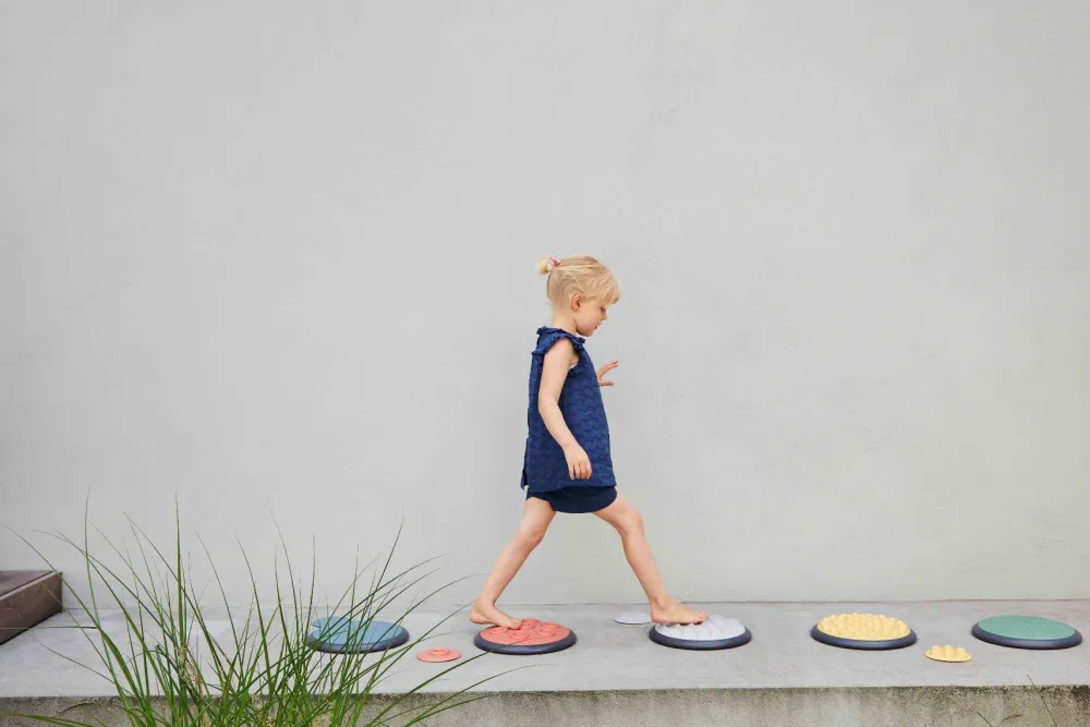 Disse føleskiver inviterer børnene til at bruge og udvikle deres følesans. Sættet består af 5 store og 5 små føleskiver, hver skive med eget mønster og farve. Designet er nyt og i fine, nordiske farver.