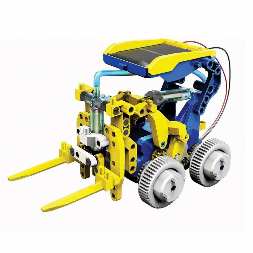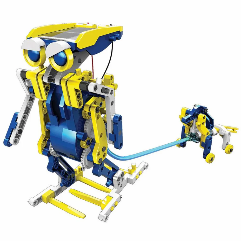 Dit barn lærer om mekanik, hydraulik og solenergi undervejs i legen. Robotterne kan nemlig bevæge sig med solenergi.