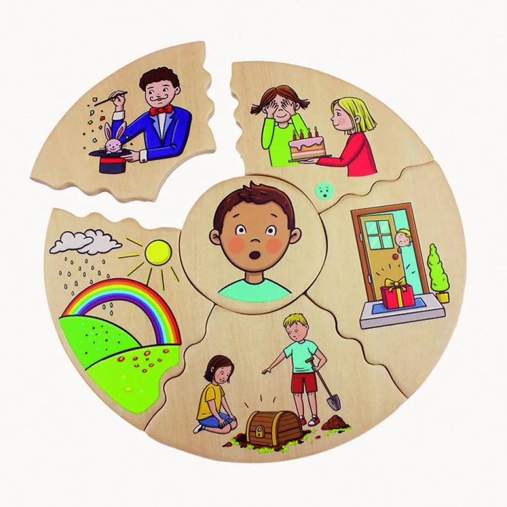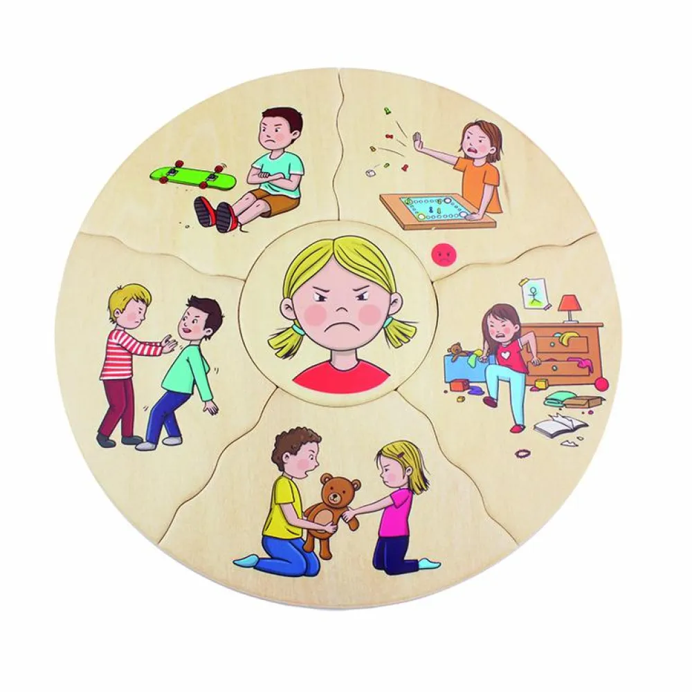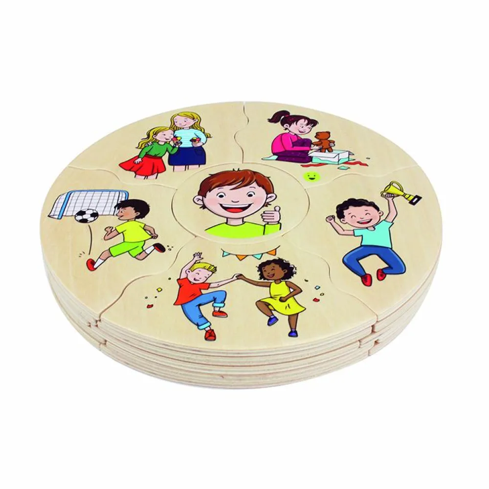 Med disse puslespil få I en anledning til at styrke ordforrådet, og du kan bruge puslespillene som en del af en refleksion eller samtale om, hvad følelser egentlig er for noget, hvad børnene på billederne oplever, og hvordan dit barn har det lige nu.
