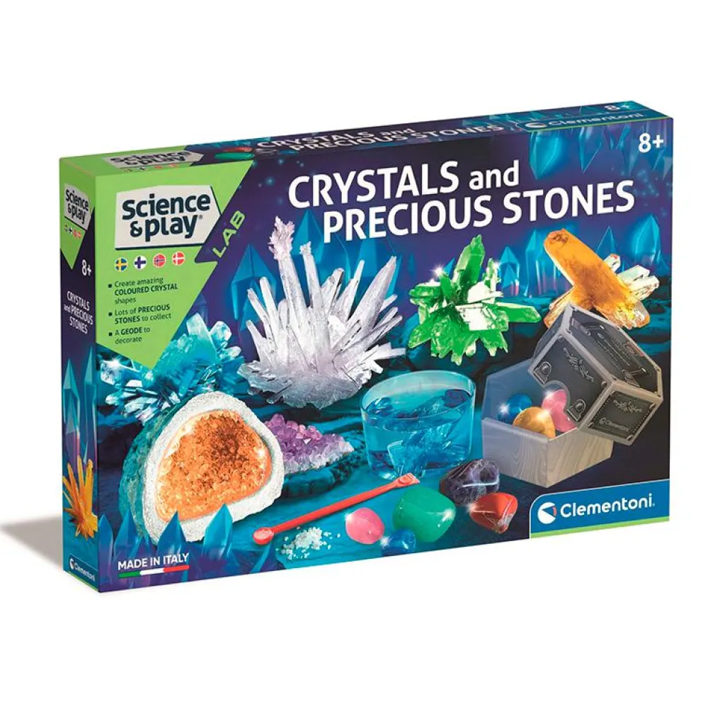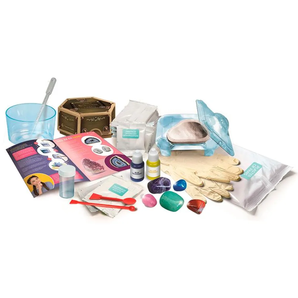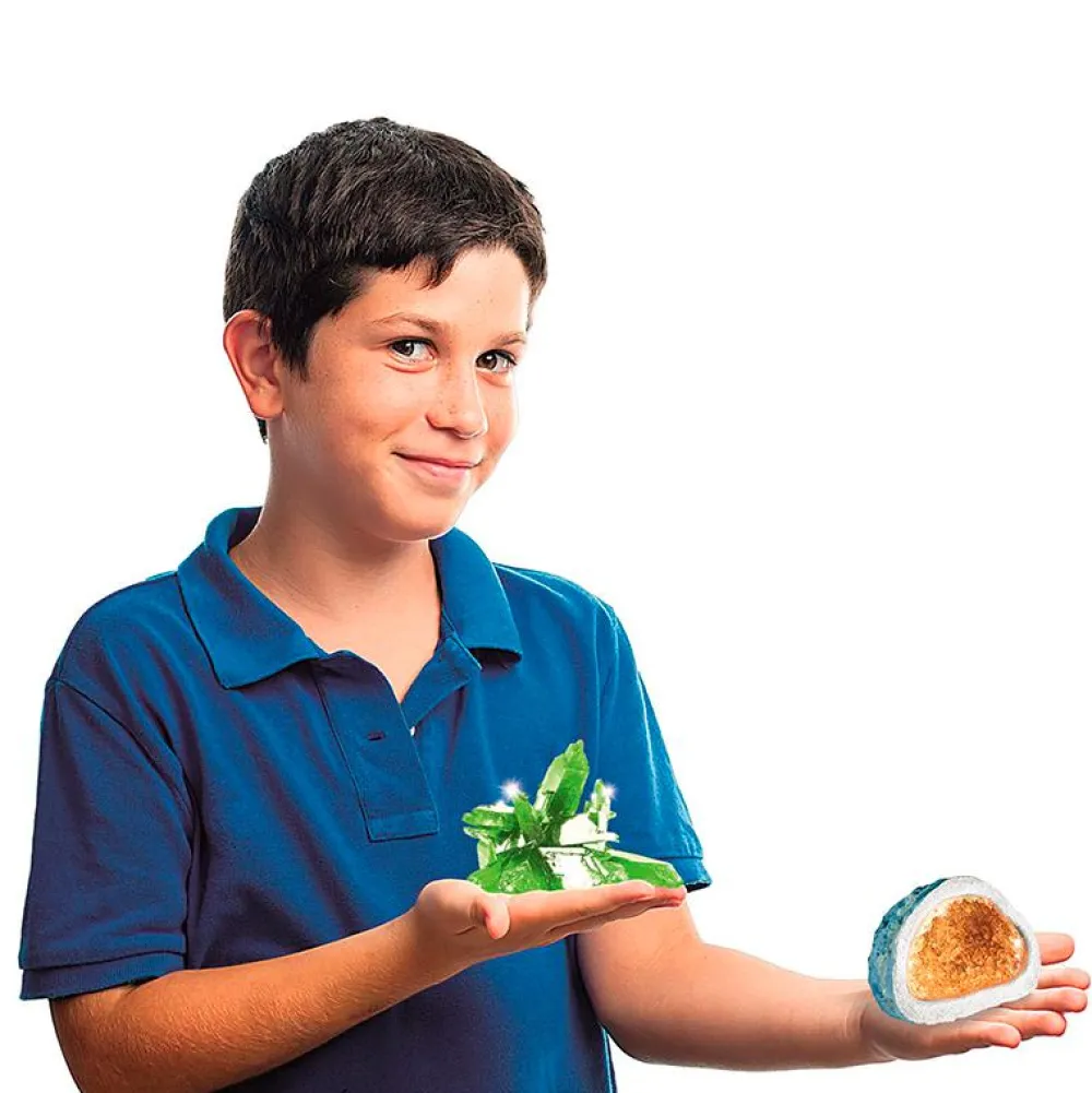Fremragende til regnvejrsdage med nysgerrige børn og unge. Her kan dit barn støbe geoder og dekorere dem med krystaller, dyrke sine egne krystaller og studere de medfølgende ædle stene.