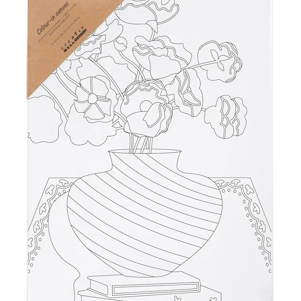 Dit barn har sikkert prøvet at farvelægge på papir. Her kan I farvelægge på lærred, som kan holde til blandt andet akrylmaling, alkoholbaserede tusser og at lege med struktur fra foam clay og glitter clay eller pailetter og papir.