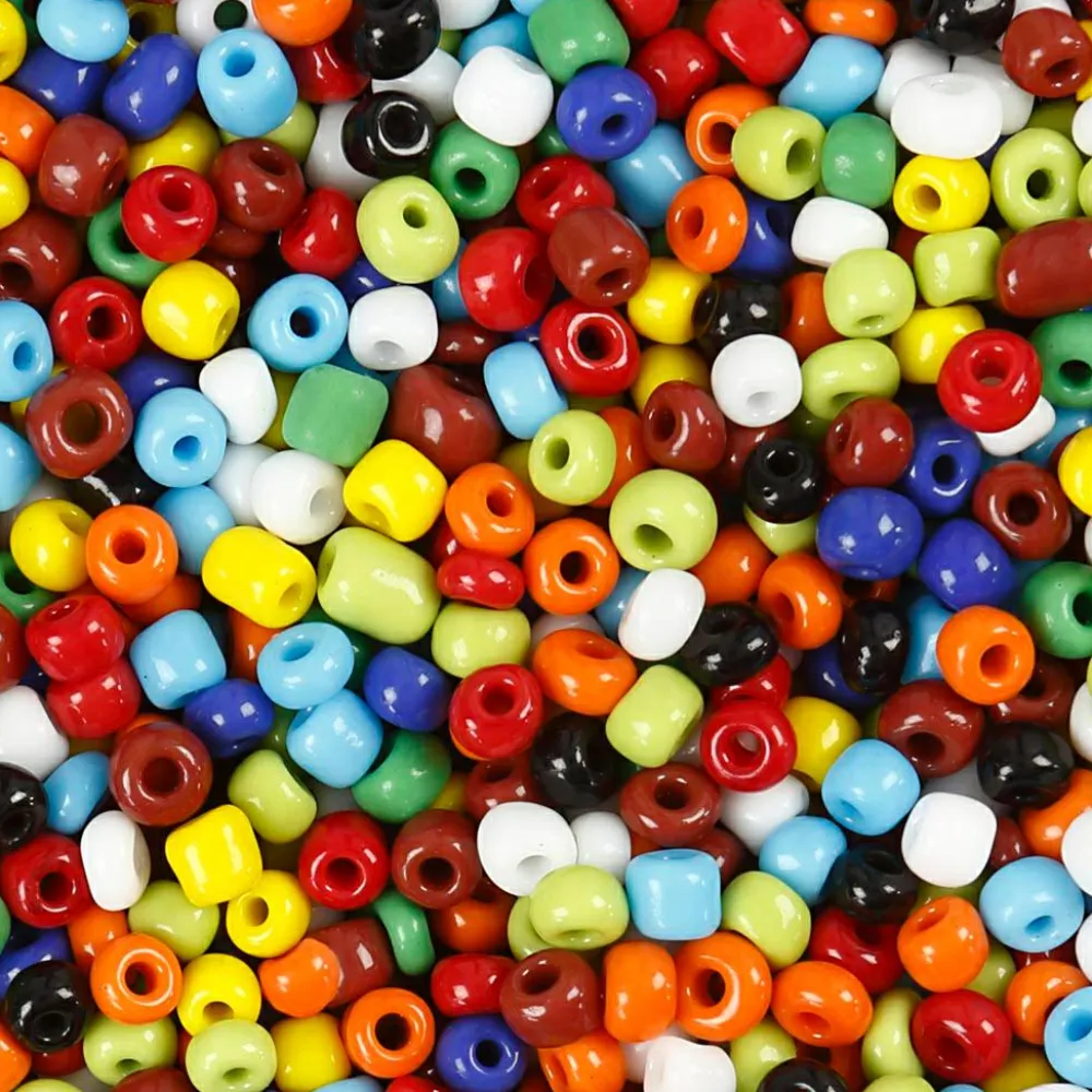 Hulstørrelsen varierer mellem 0,9-1,2, vælg derfor en nål, som kan komme gennem dem alle. Det er nemlig irriterende at blive afbrudt af perler, som stopper på nålen.