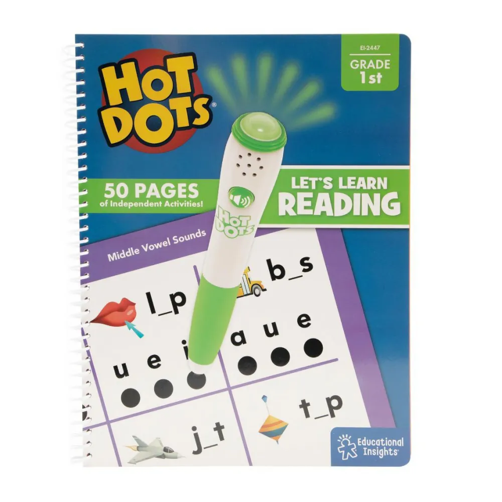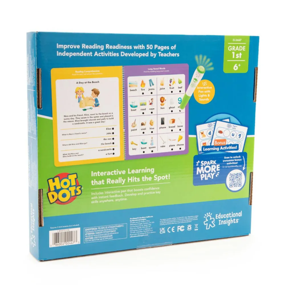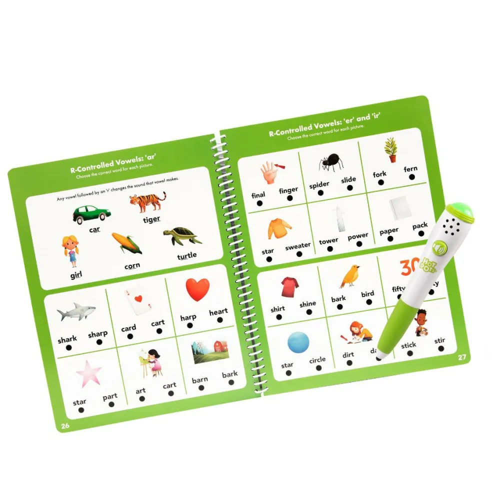 Hot Dots® er et smart læringssystem, hvor dit barn svarer på spørgsmål og løser opgaver med en pen. Pennen lyser op og siger en lyd, der tydeligt viser dit barn, om svaret er korrekt.