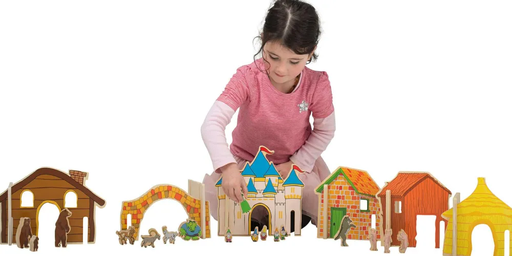 Når børn skal tilegne sig forståelse for historier, er fysiske redskaber en stor hjælp. Dette skønne klodssæt giver børn mulighed for at lege med eventyrets handling, og det er også en virkelig god måde at levendegøre selve eventyret, mens det fortælles.