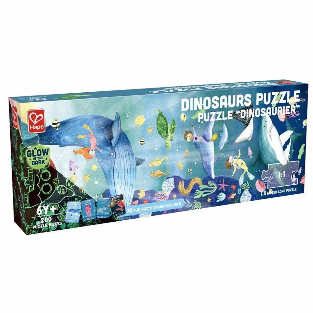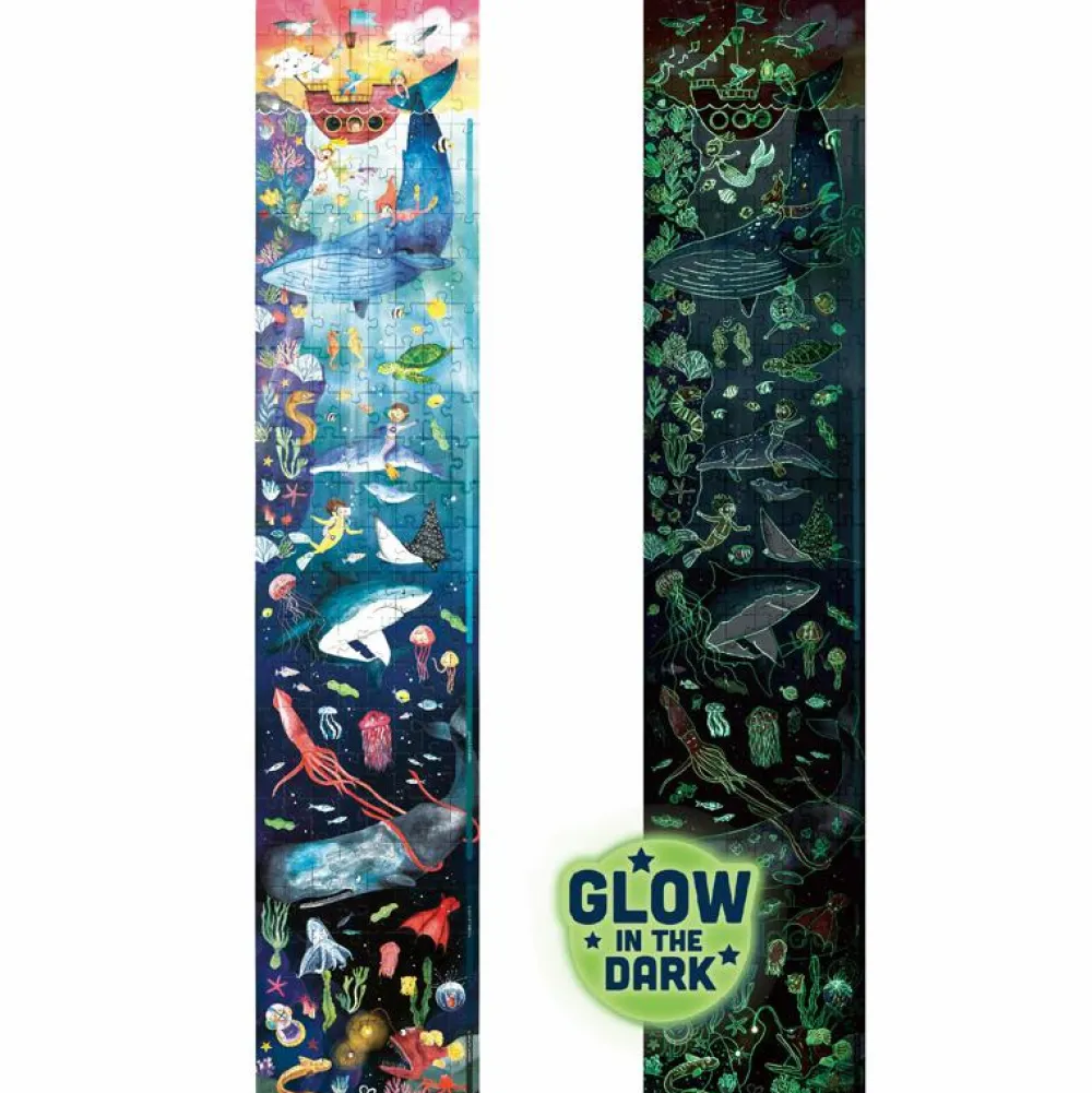 Puslespillet lyser i mørke, så prøv at lægge og og slukke lyset – nu lyser konturerne op på magisk vis.