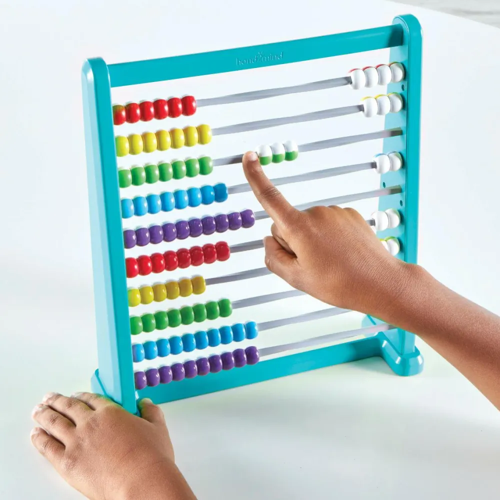 Denne kugleramme giver på pædagogisk vis dit barn en bedre chance for at visualisere tal ved den simple handling, at kuglerne skifter farve til hvid, når de er blevet talt og glides til fra venstre til højre.