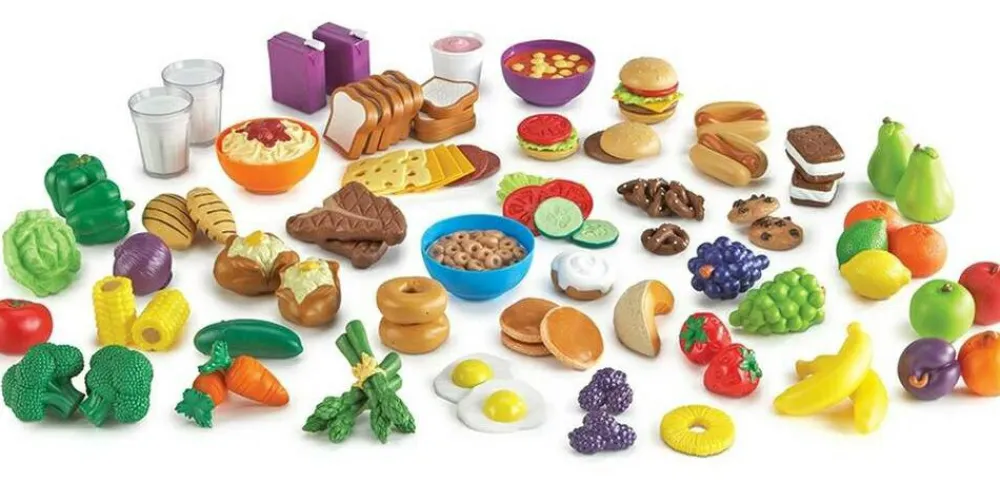 Igennem legen med maden styrker du børnenes ordforråd, og rollelegen med fx at servere mad for venner eller dukker eller lege købmand med køb og salg af varerne er god til træning af sociale færdigheder. Desuden kan I få jer en god snak om, hvad der er godt og sundt mad for kroppen.
