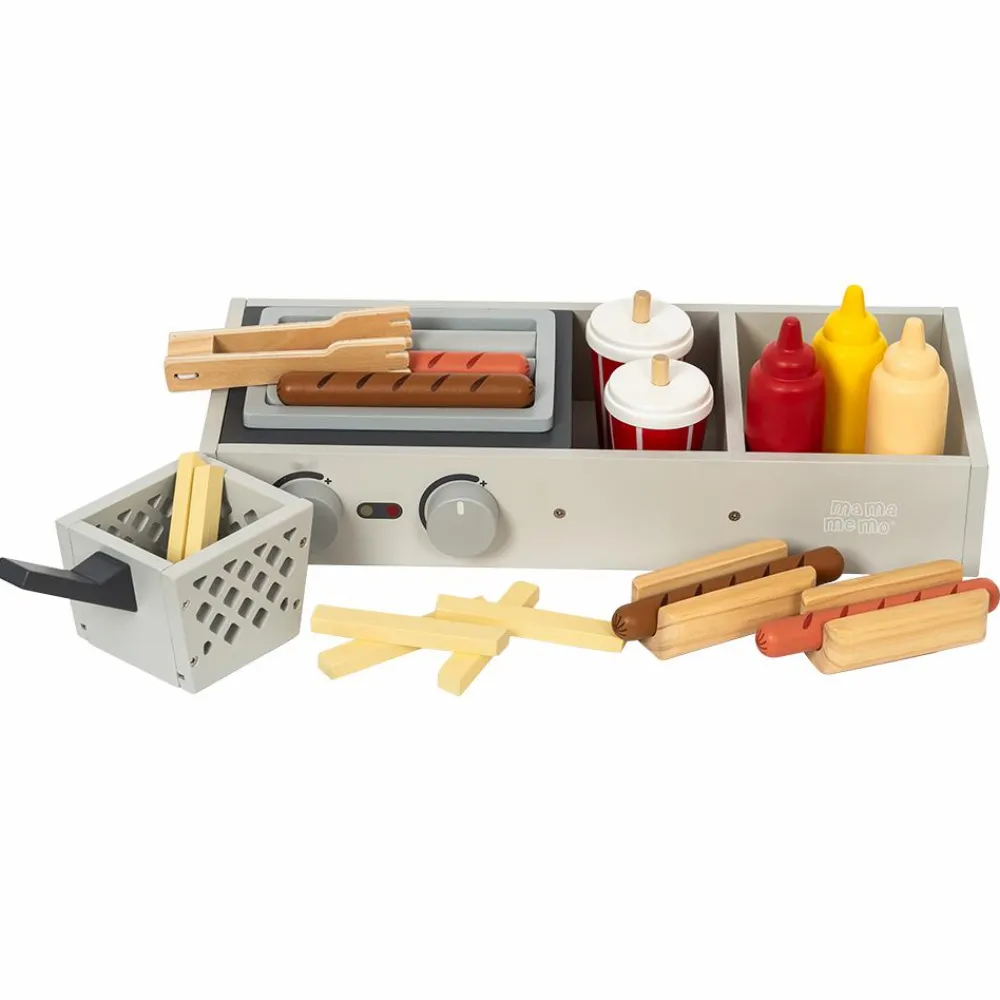 Med pølser, brød, pincet, sprøde pommes frites og forfriskende sodavand som alt sammen har realistisk udtryk.