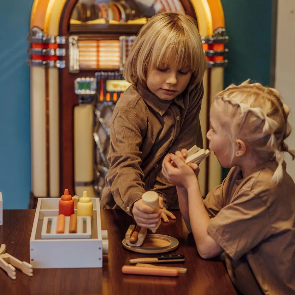 Fin og charmerende pølsebod hvor dit barn kan invitere dig, en søskende, ven eller bamse på en bid fra “Cafe fodkold”.
