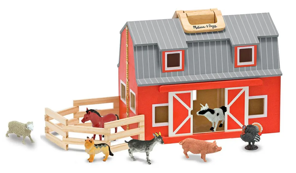 Denne bondegård er robust og med håndtag, så man kan tage den med på ferie eller tur.