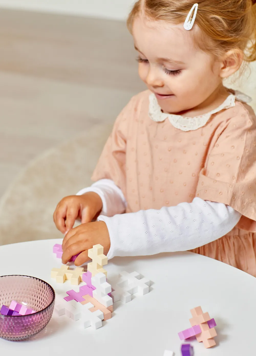 Plus-Plus er skønt konstruktionslegetøj, som begejstrer de fleste børn. Formen som små plus-tegn kan sættes sammen både i 2D og 3D – og de findes i et væld af farver og i både små (2 x 1,2 x 0,4 cm) og store (5 x 3 x 1 cm). Det udvikler dit barns sans for geometri og logik at bygge med Plus-Plus. Forslag og bunkevis af vejledninger til Plus-Plus kan du finde frem på fx YouTube.