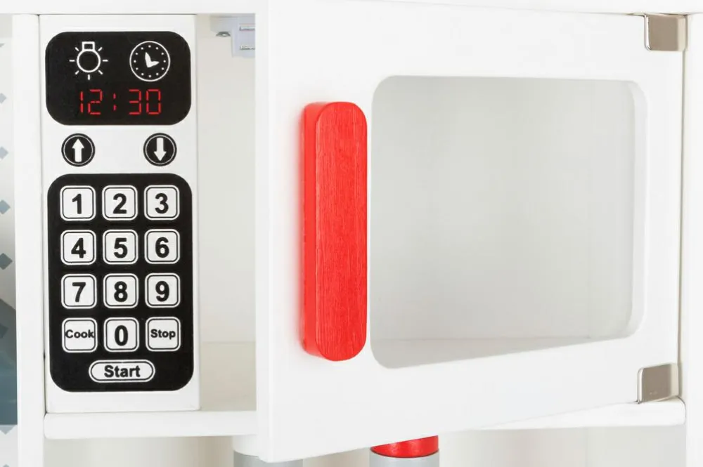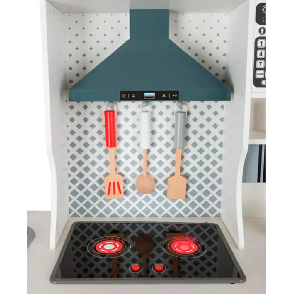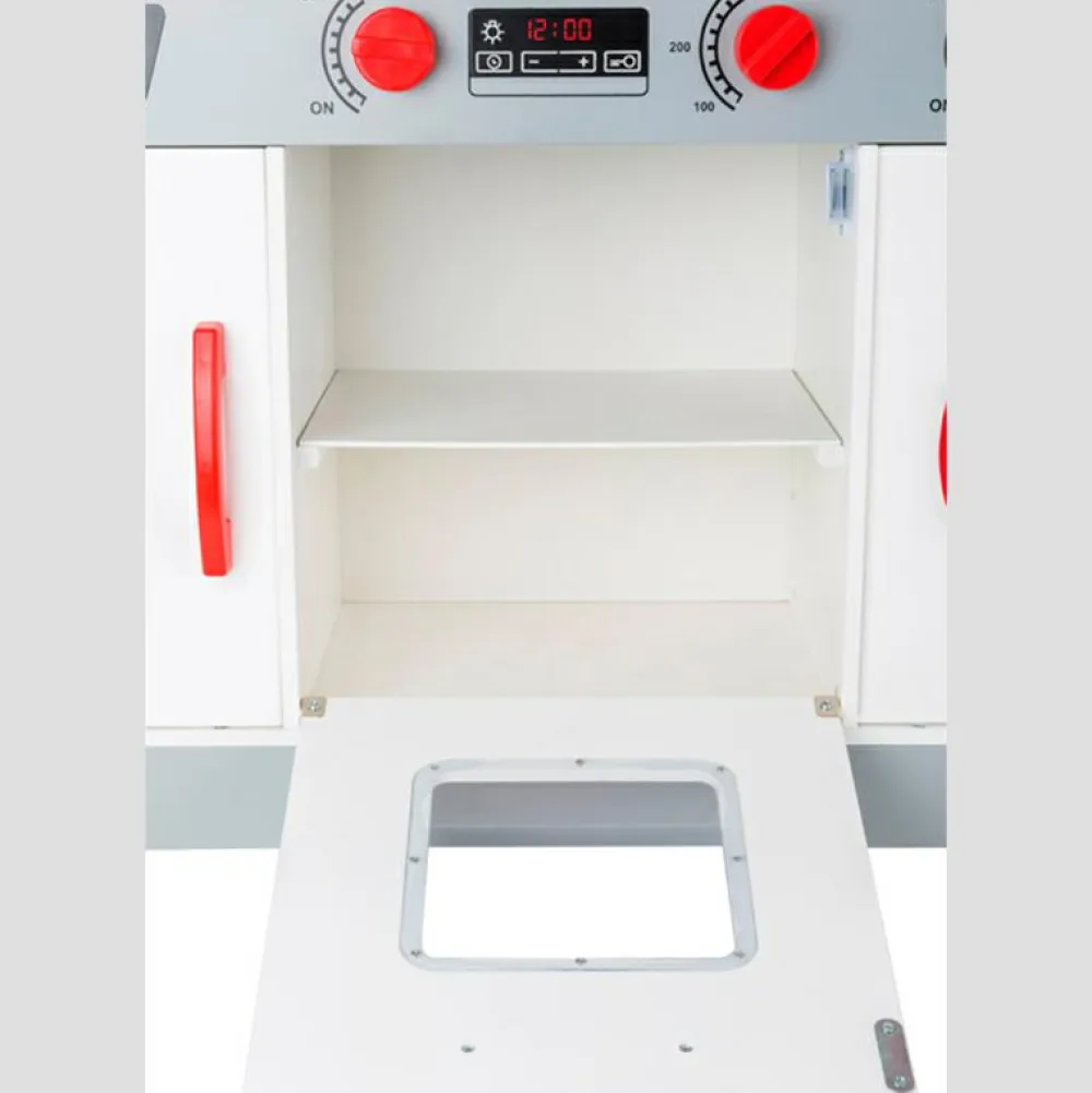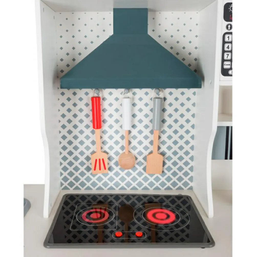 90 cm stort legekøkken, hvor flere børn kan samarbejde om at lave mad, brygge kaffe og tage opvasken.