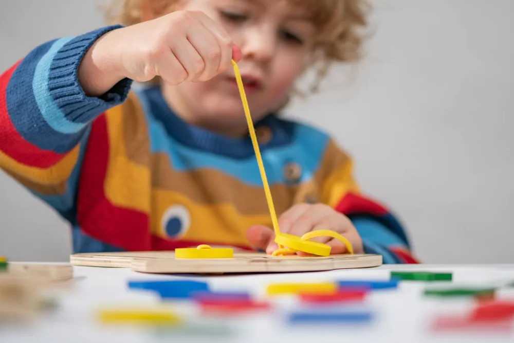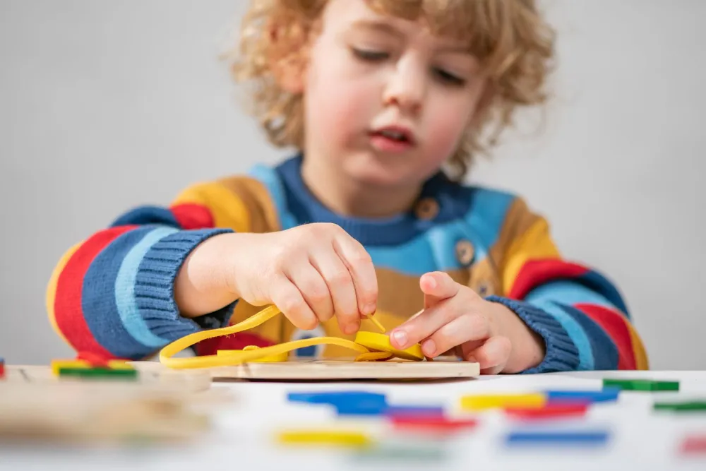 En sjov, finmotorisk udfordring, hvor dit barn også skal øve sig i mønstergenkendelse og måske endda at binde en sløjfe eller to.