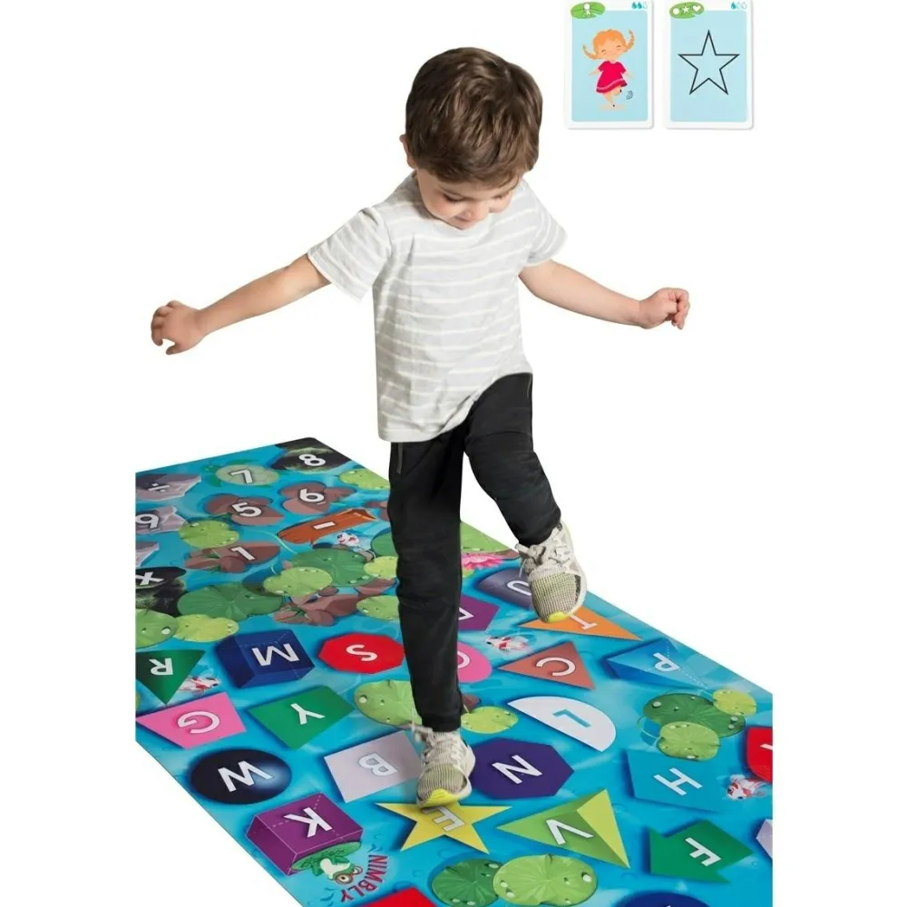Læringstæppet Nimbly® udvikler grovmotorik og kognitive evner hos helt små og lidt større børn fra vuggestue- til indskolingsalderen.