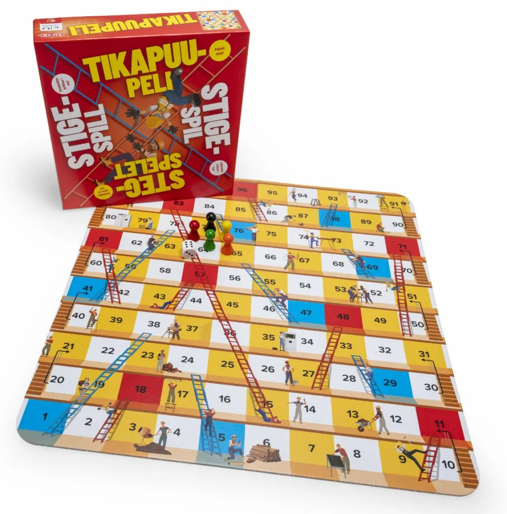 Hvem kommer først til tops udenom de mange forhindringer? Spillet handler om at komme først i mål. Man slår med en almindelig terning. Hvis du er så heldig at lande for enden af en stige, må du flytte din brik op til stigens top. Men lander du i stedet på en fælde, må du flytte brikken ned i fældens bund.