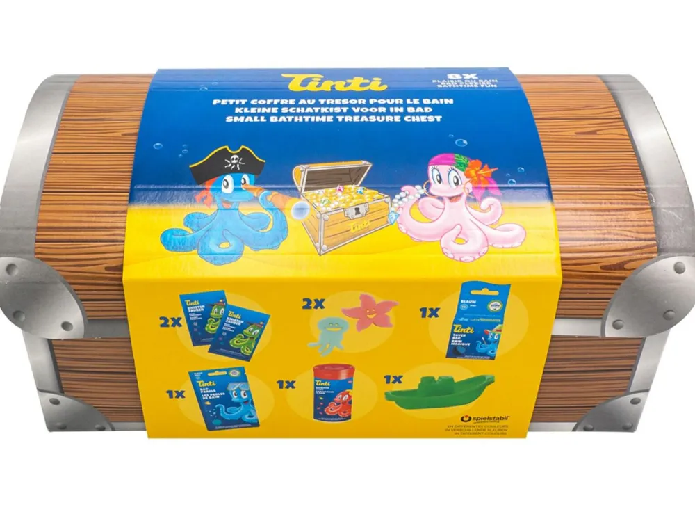 Tinti gør meget ud af, at alle deres produkter er dermatologisk testede og godkendte. I nogle af produkterne i skattekisten er der æteriske olier og dufte, og farvestofferne i badelegetøjet er fødevaregodkendt.