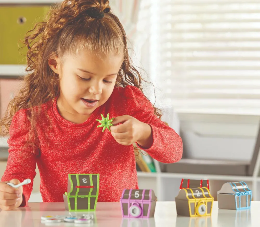Det er tilfredsstillende at sortere og få lagt ting korrekt på plads. For mange børn giver det en god ro med orden. Her er et hyggeligt sorteringssæt med pirattema.