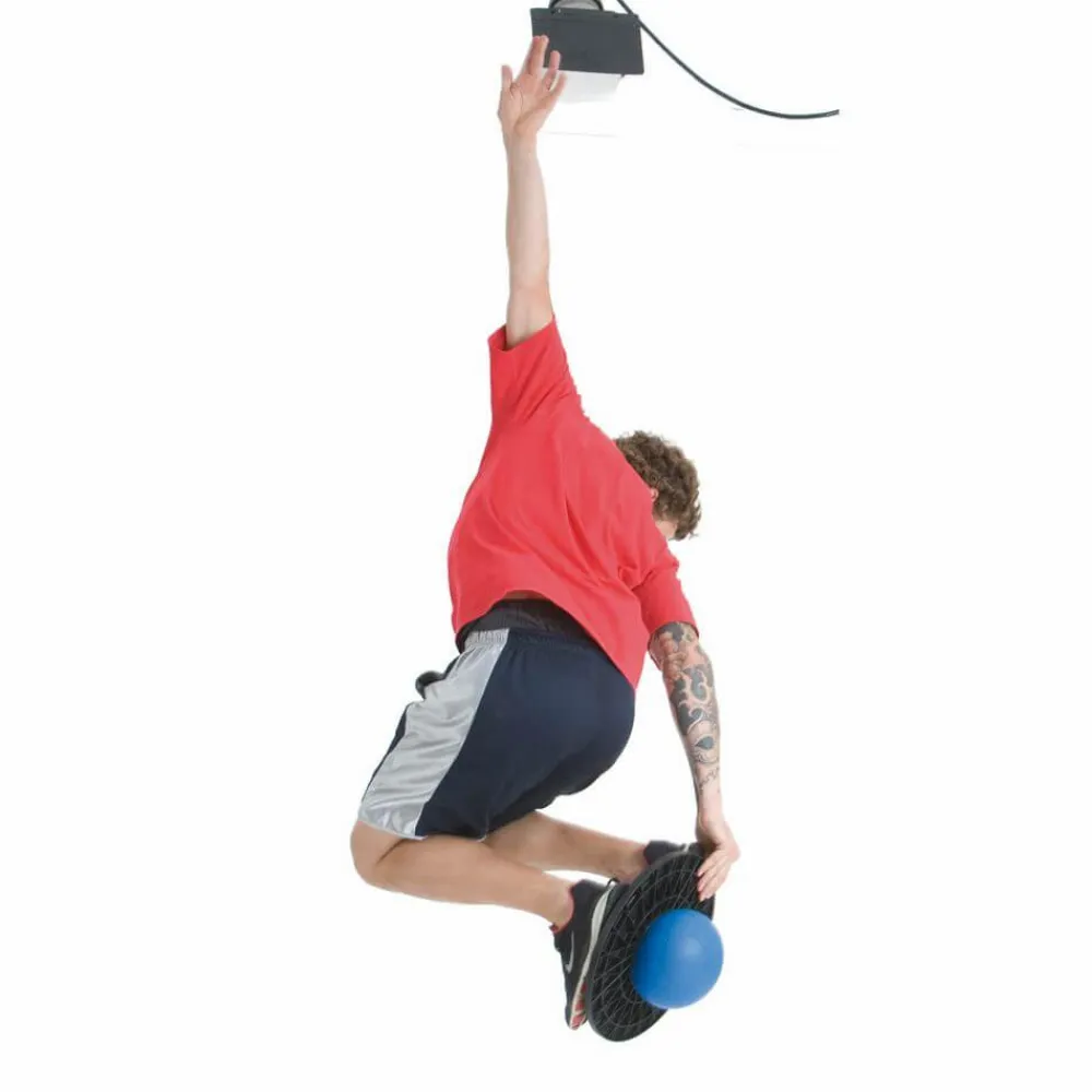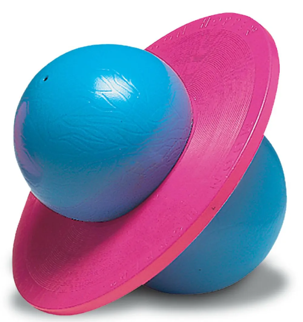 Man kan hoppe på den, samtidig med at man klemmer fødderne om den øverste bold, så kan man hoppe ligesom på en kænguru stylte.