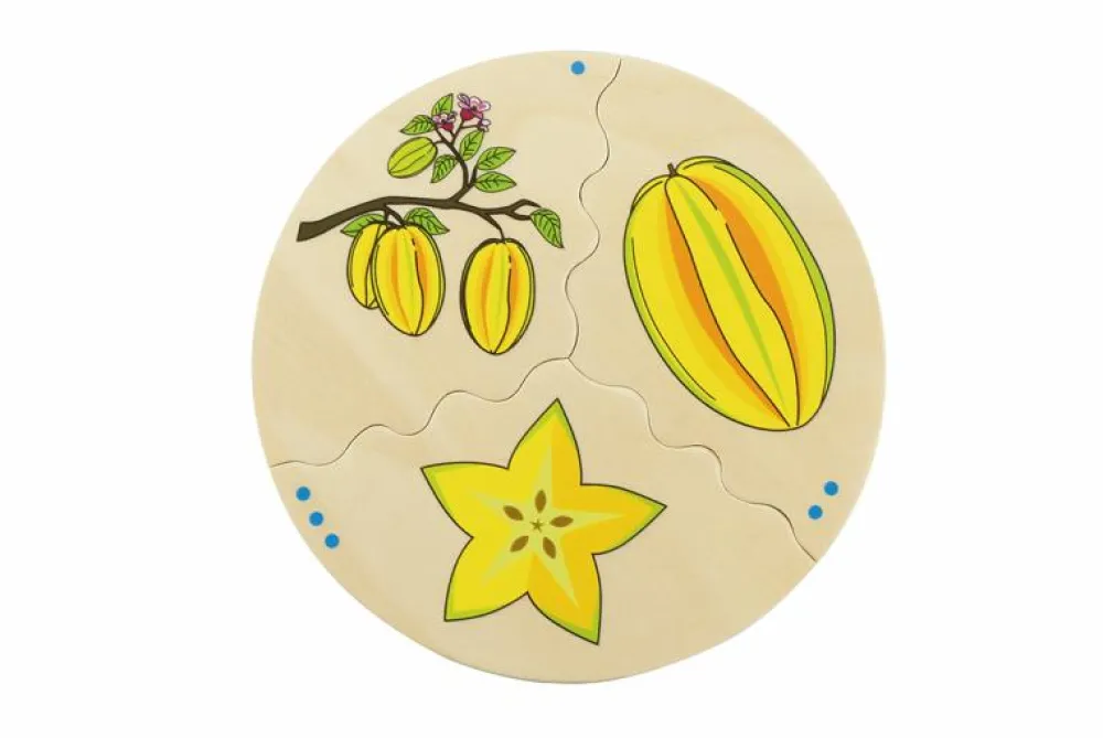 Med 10 lag med forskellige frugter. Billederne viser frugterne på planten, hele frugten og frugten skåret ud.