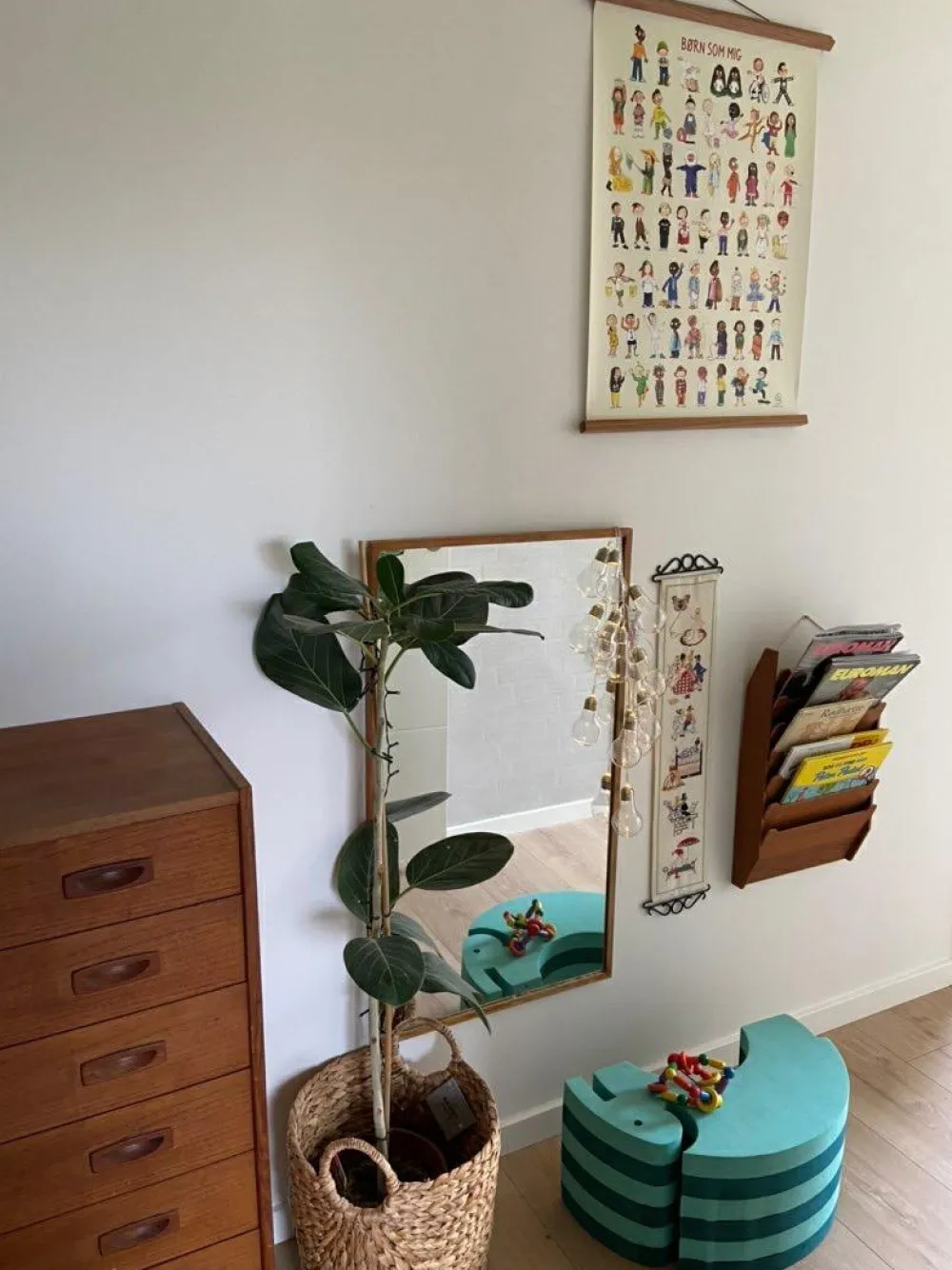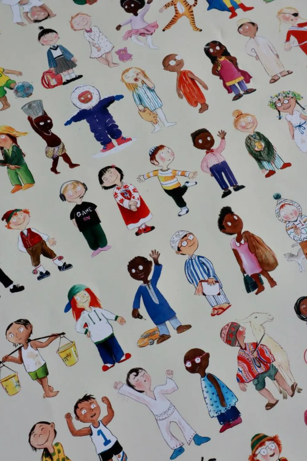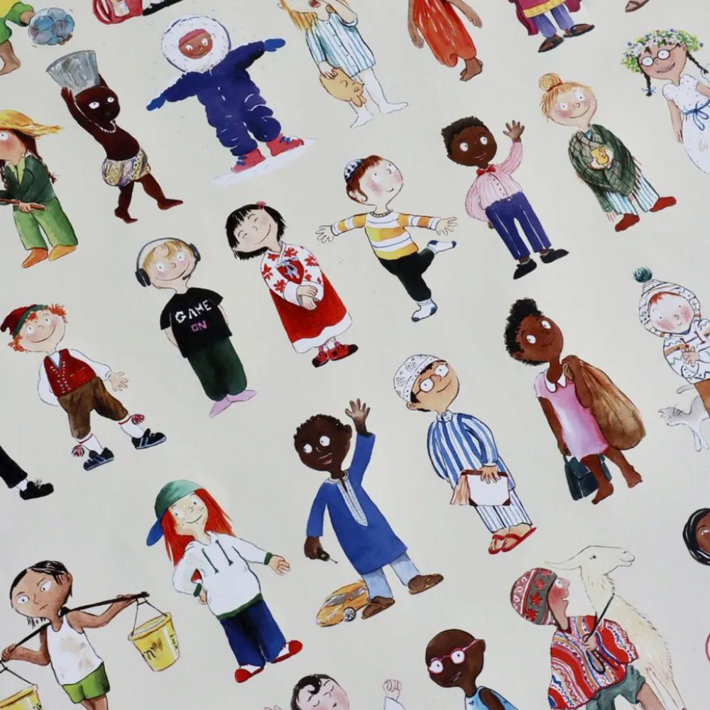Den er perfekt til sjove snakke eller lege, hvor det gælder om først at finde noget, der begynder med G, finde 4 gule ting eller eller tælle, hvor mange der har noget på hovedet.