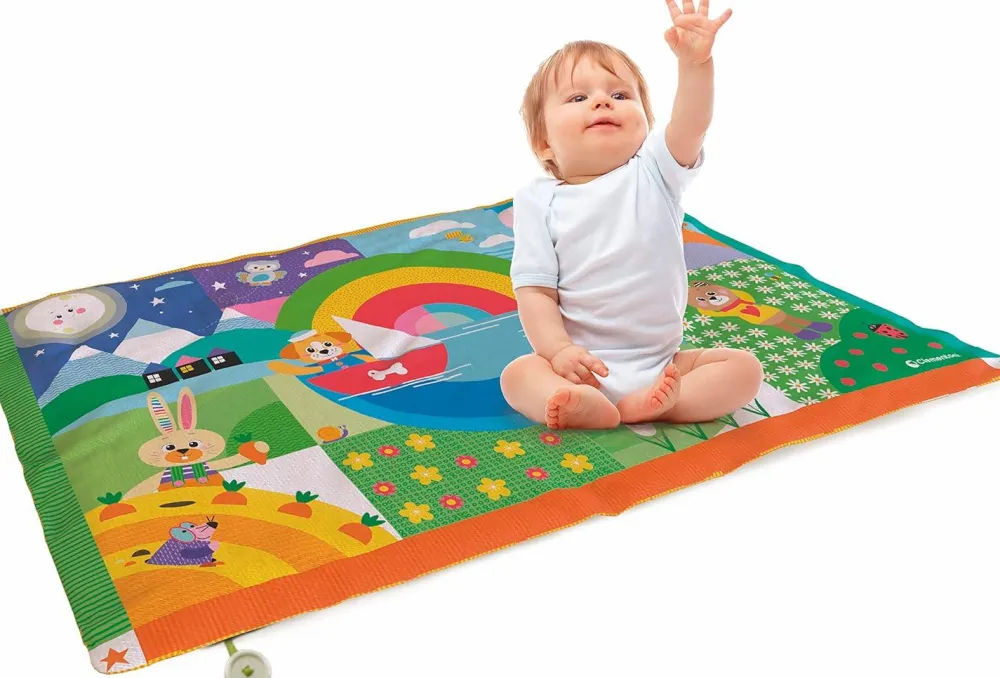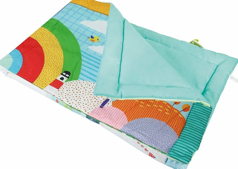 Gør dit barns legeplads på gulvet til en lun og blød oplevelse med et flot og farverigt legetæppe, der kan vaskes og pakkes sammen.