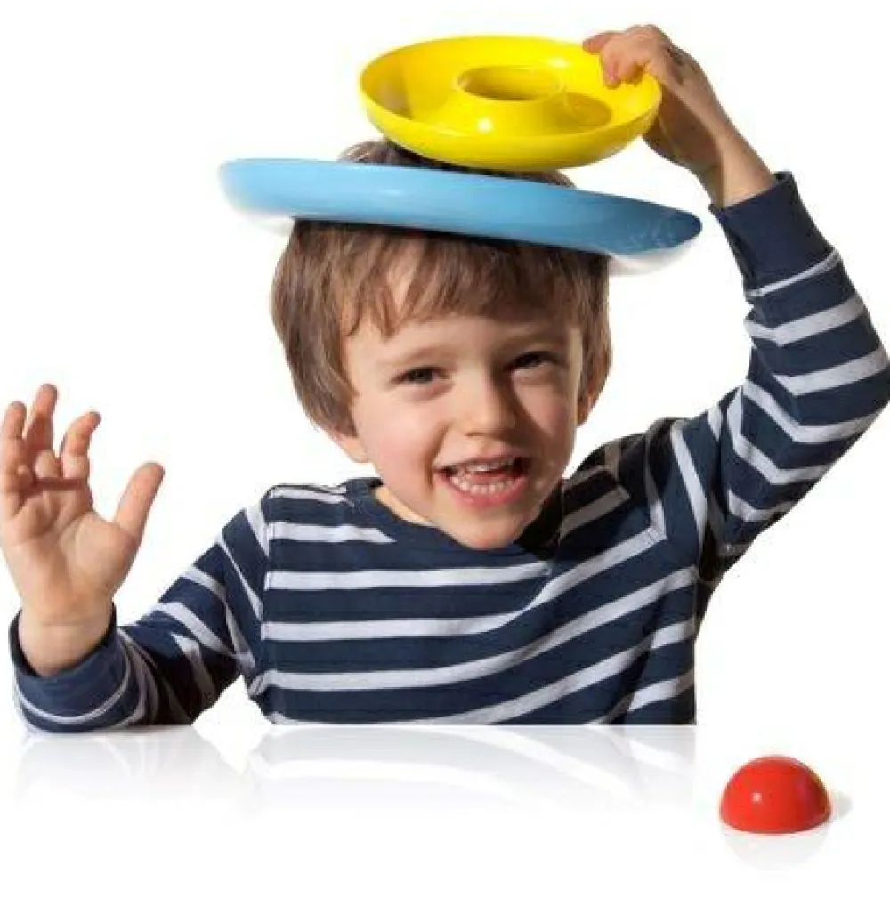 Ringene kan bruges til balancelege, hvor dit barn skal holde dem på hovedet eller have dem placeret på strakte arme uden at holde fast i ringene med hænderne, mens I gennemfører en forhindringsbane.