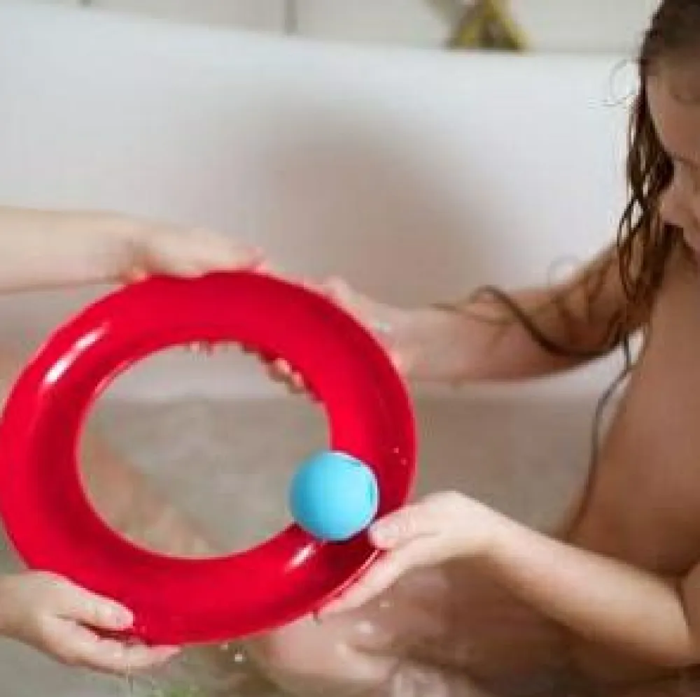 Ringene passer ind i hinanden som et puslespil. De kan bruges i badekarret som badelegetøj.