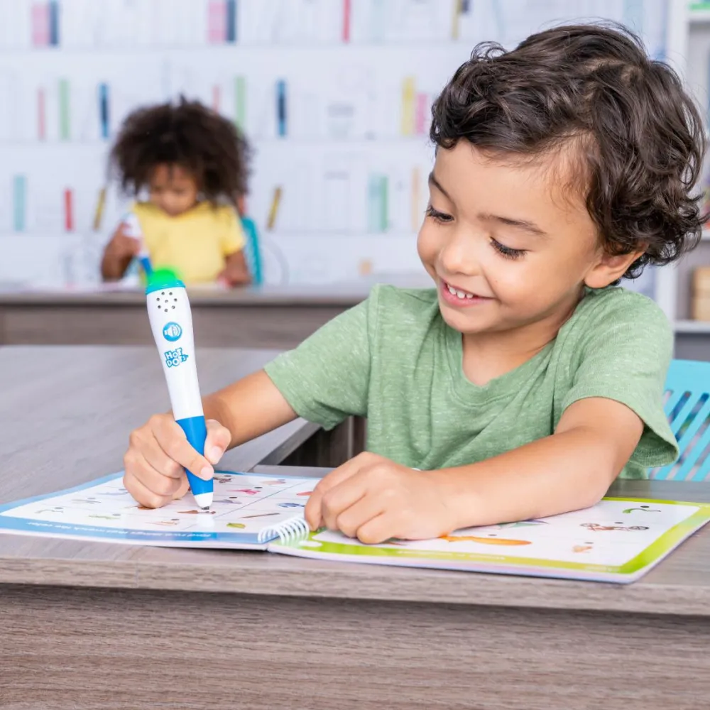 Hot Dots® er et smart læringssystem, hvor dit barn svarer på spørgsmål og løser opgaver med en pen. Pennen lyser op og siger en lyd, der tydeligt viser dit barn, om svaret er korrekt.