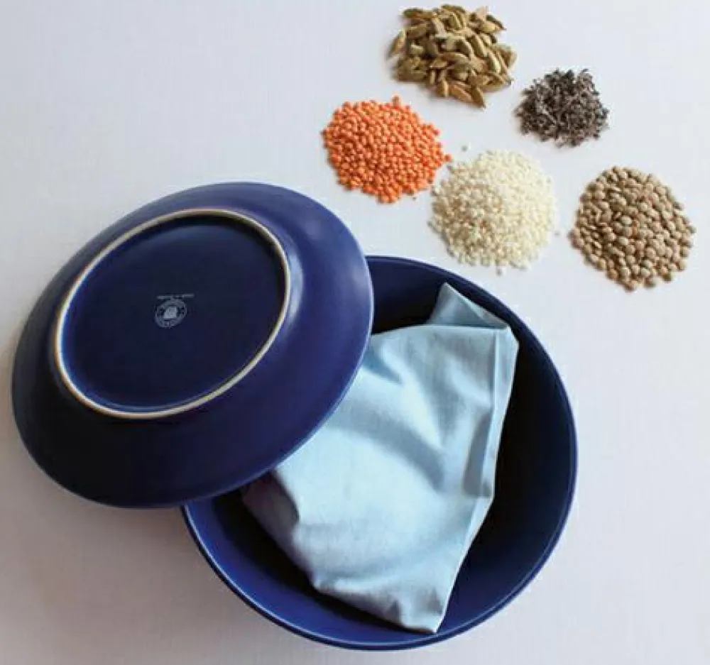 Der medfølger også en pose, som allerede er fyldt med små kugler af plastgranulat – denne må dog ikke komme i mikroovnen!