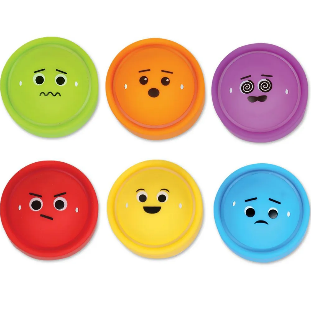 De repræsenterer 6 forskellige følelsestilstande i hver sin farve: